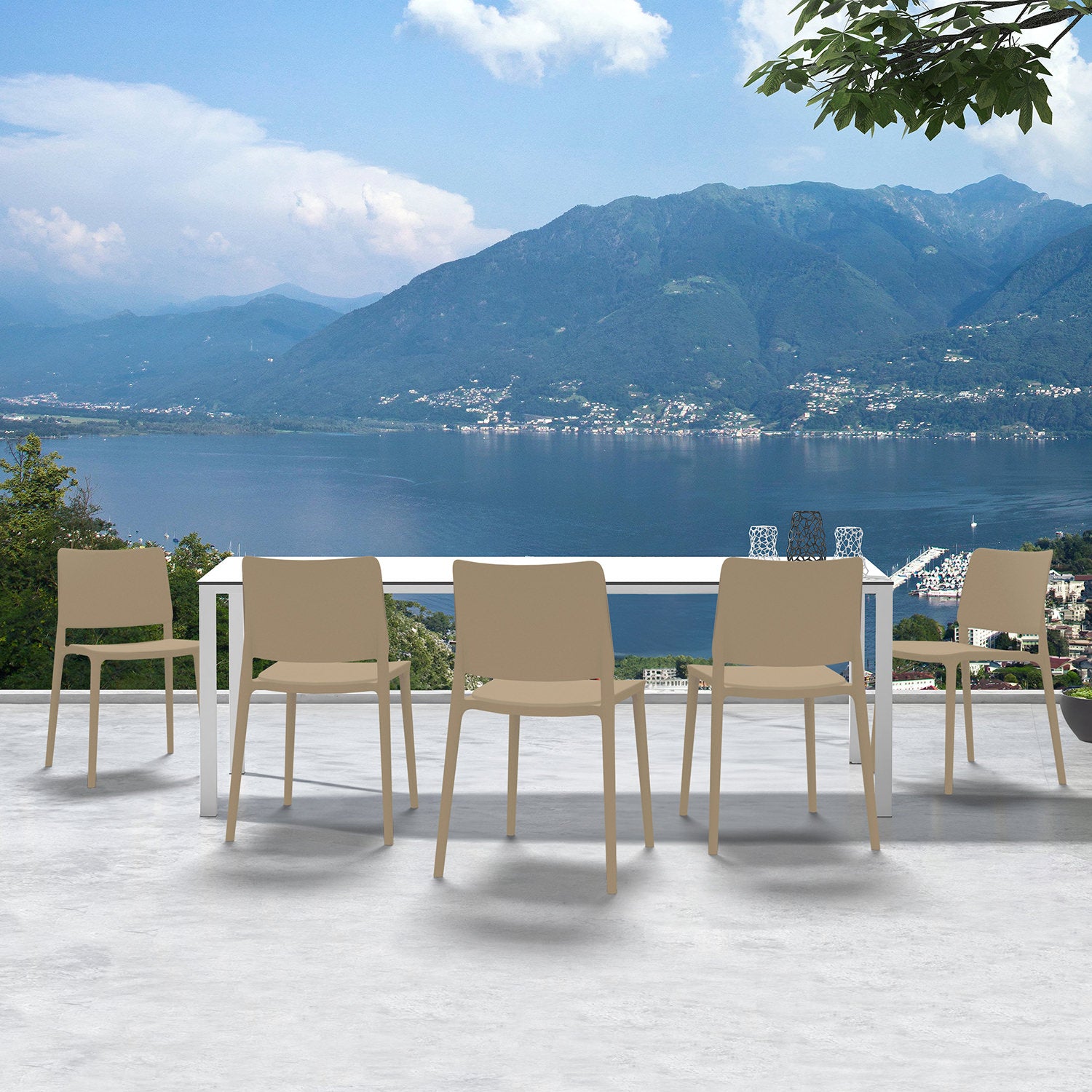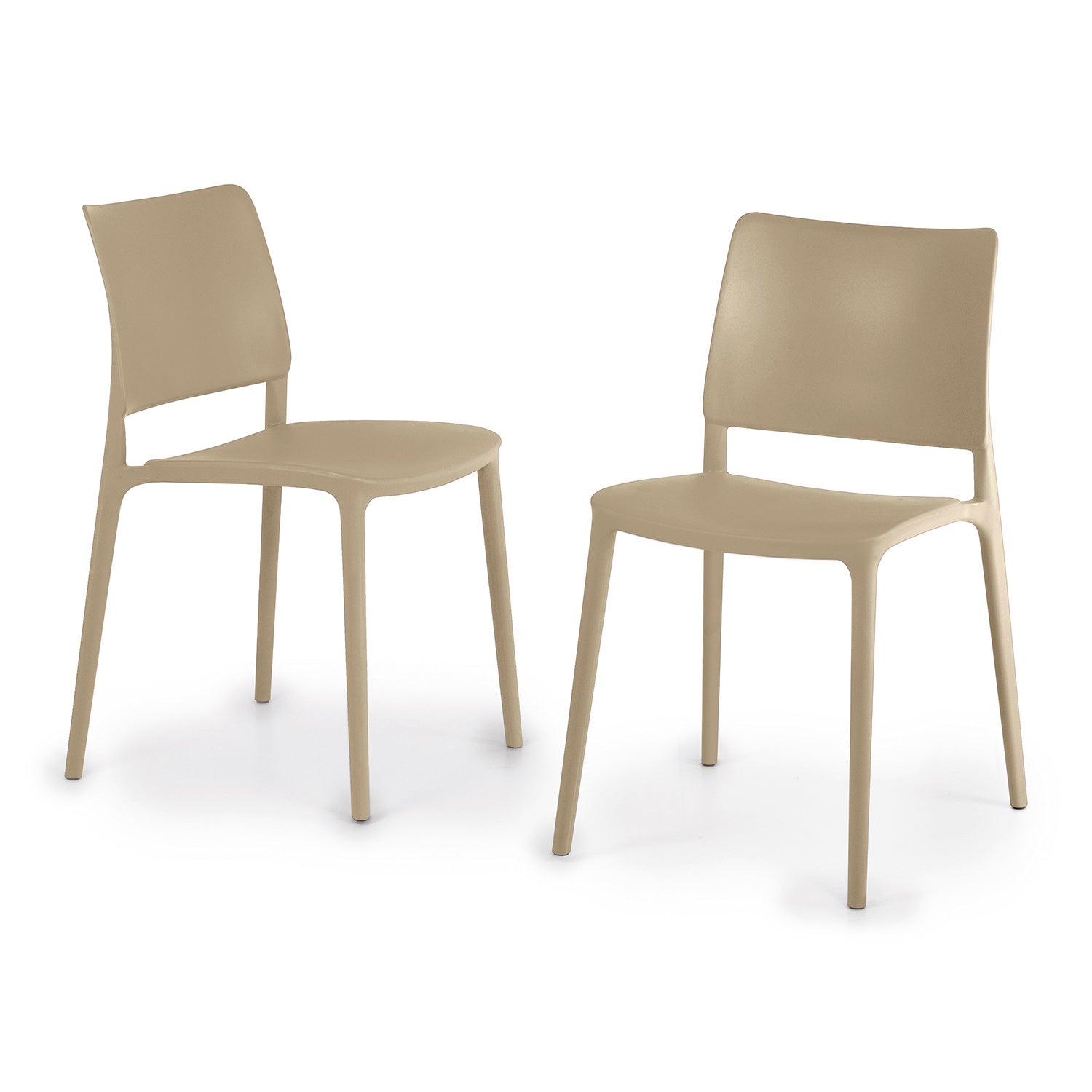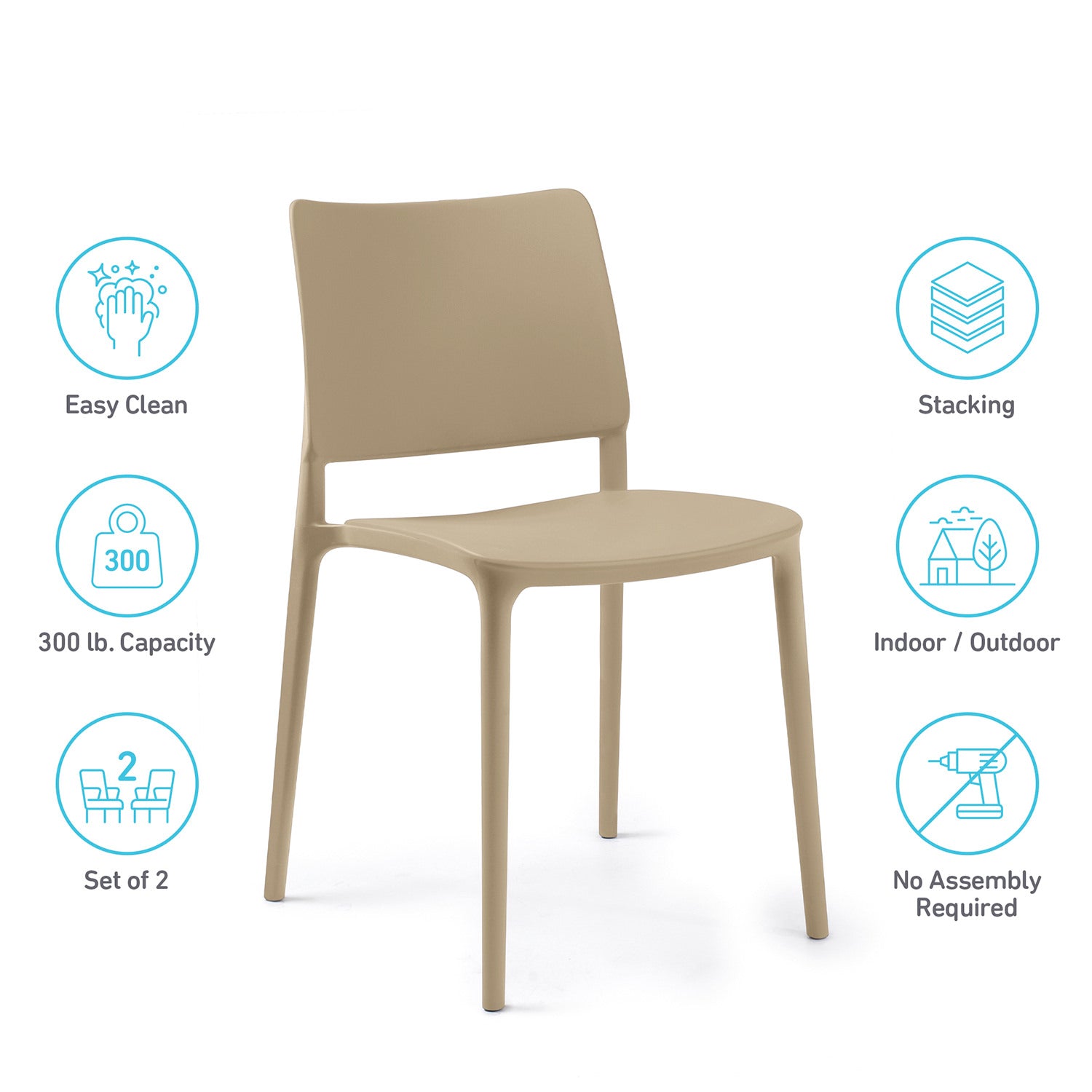 Garden Modern Outdoor/Indoor Plastic Resin Stacking Patio Dining Side Chair (Set of 2) - WHITE - Taupe