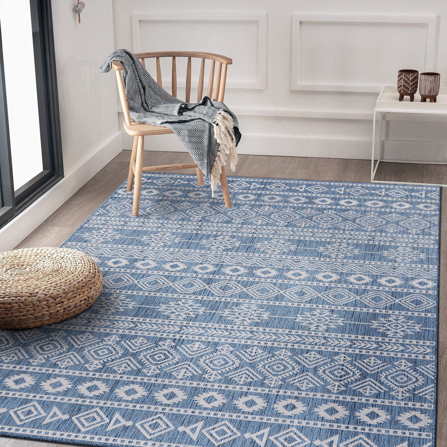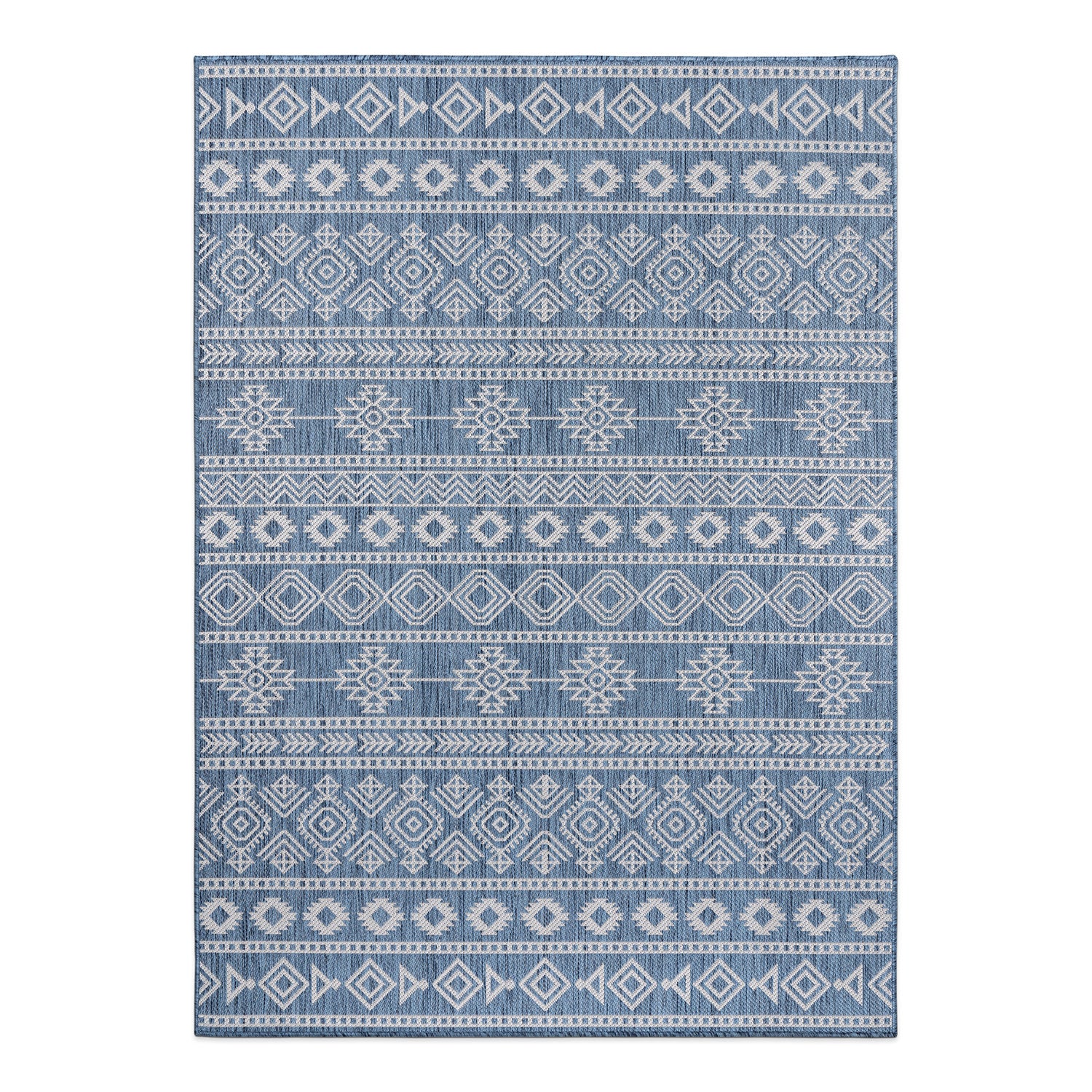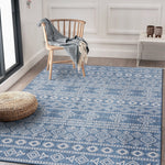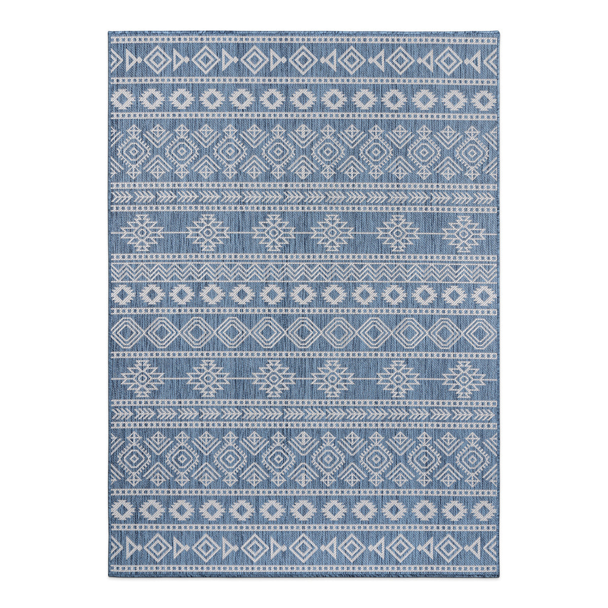 Geometric Boho Textured Flat Weave Indoor/Outdoor Area Rug - Blue