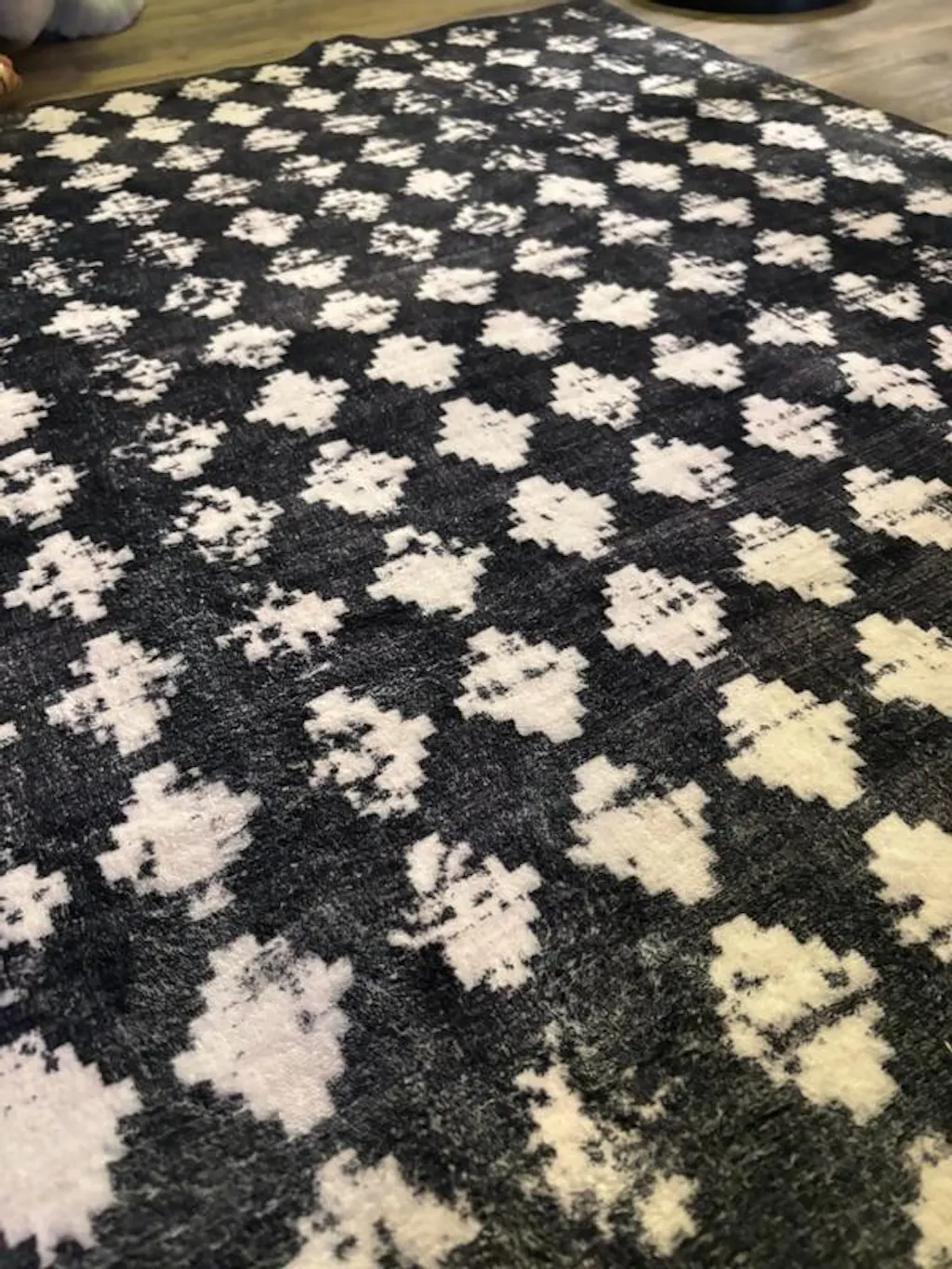 Geometric Distressed Abstract Washable Non Slip Area Rug - BLACK 5'x7' - Black