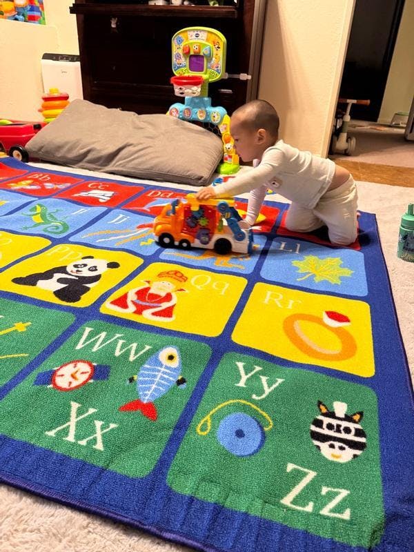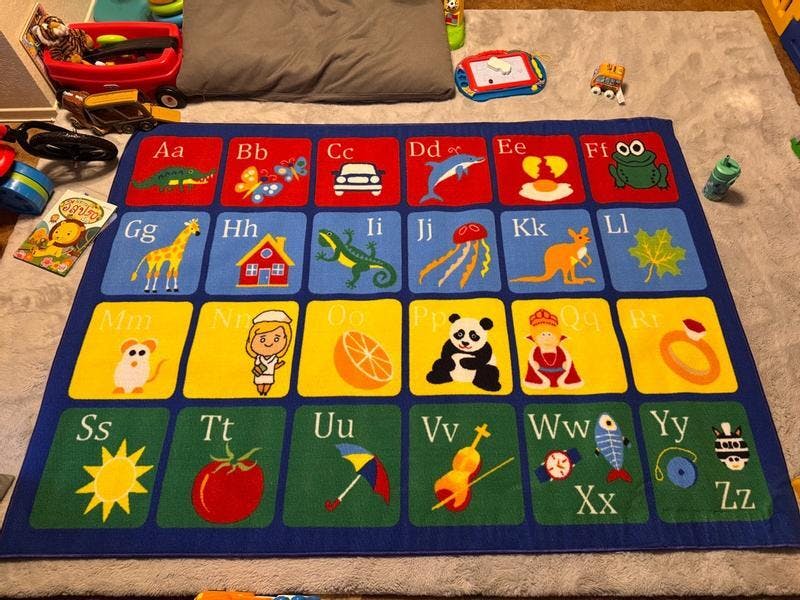 Experience the comfort and durability of our Educational Alphabet Kids rug. With a low pile height of 0.2 inches, it's incredibly easy to spot clean and vacuum. Expertly crafted using 100% Nylon looped fabric and latex backing, this rug ensures both quality and safety. Plus, it's machine washable for added convenience. The non-skid backing eliminates the need for a rug pad, making it suitable for all types of floors.
