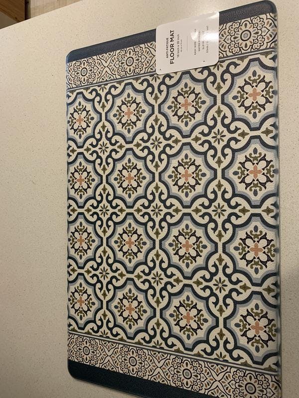 I received this anti-fatigue kitchen mat and am so glad I did!! I don't have a dishwasher and wash dishes by hand, which means prolonged standing in front of the sink. This kitchen mat has made standing less of a pain-literally! Really soft. Easy to clean, or wipe off if needed. The pattern is so beautiful and goes well with my kitchen. All in all a great mat!! I love it and recommend!