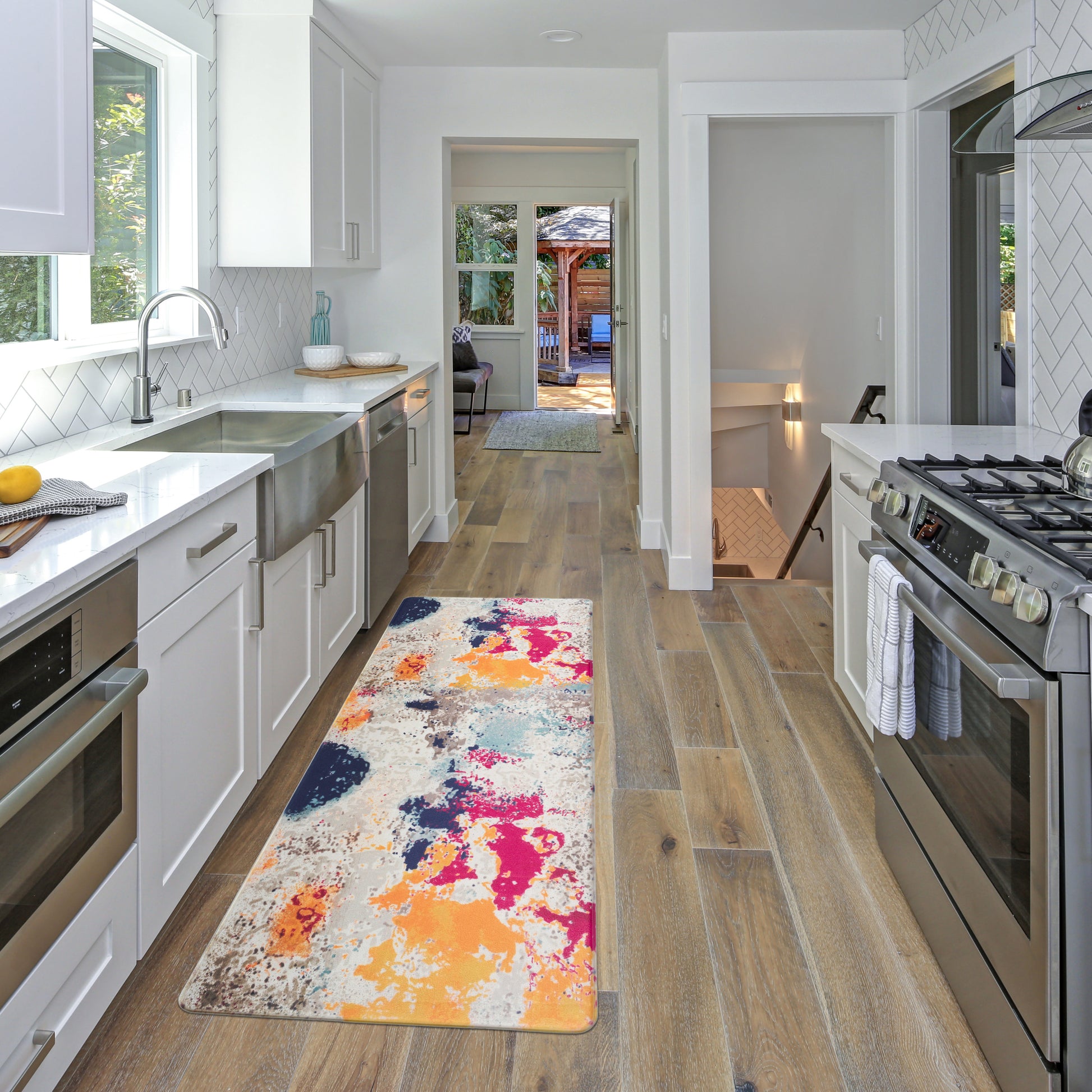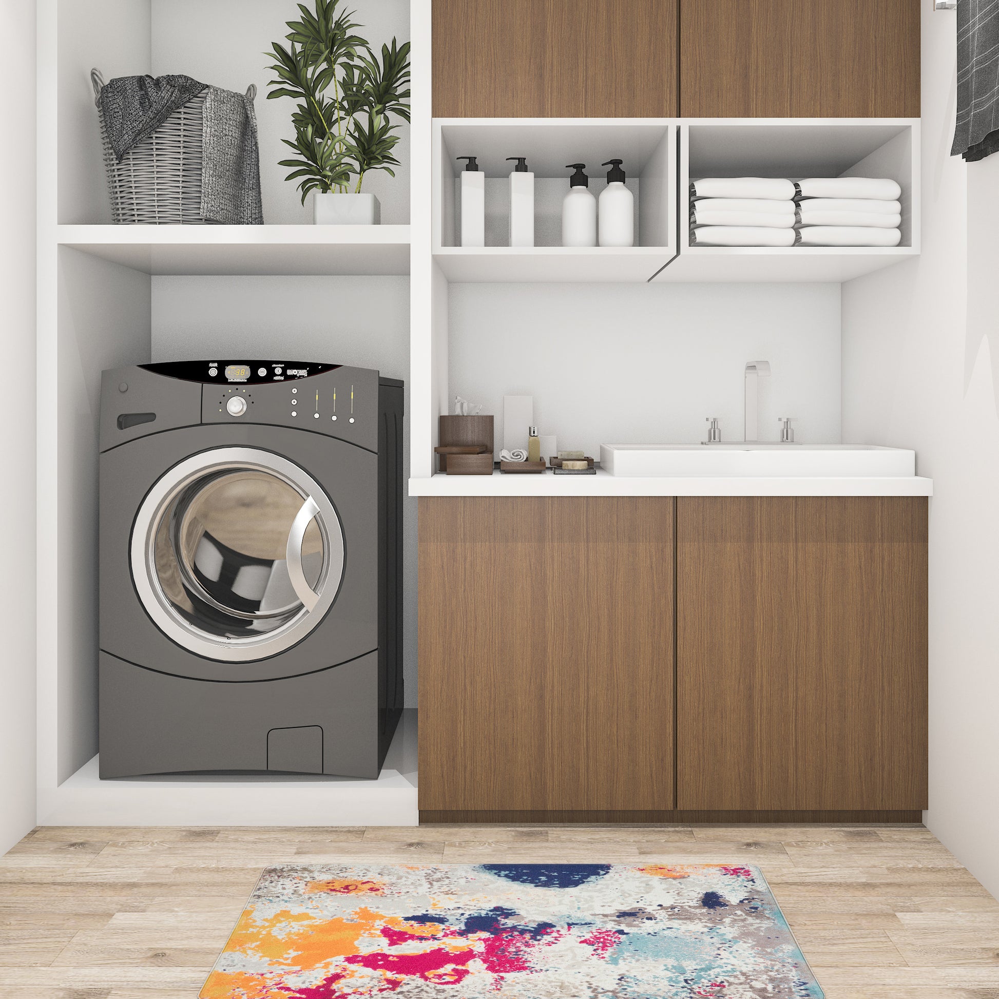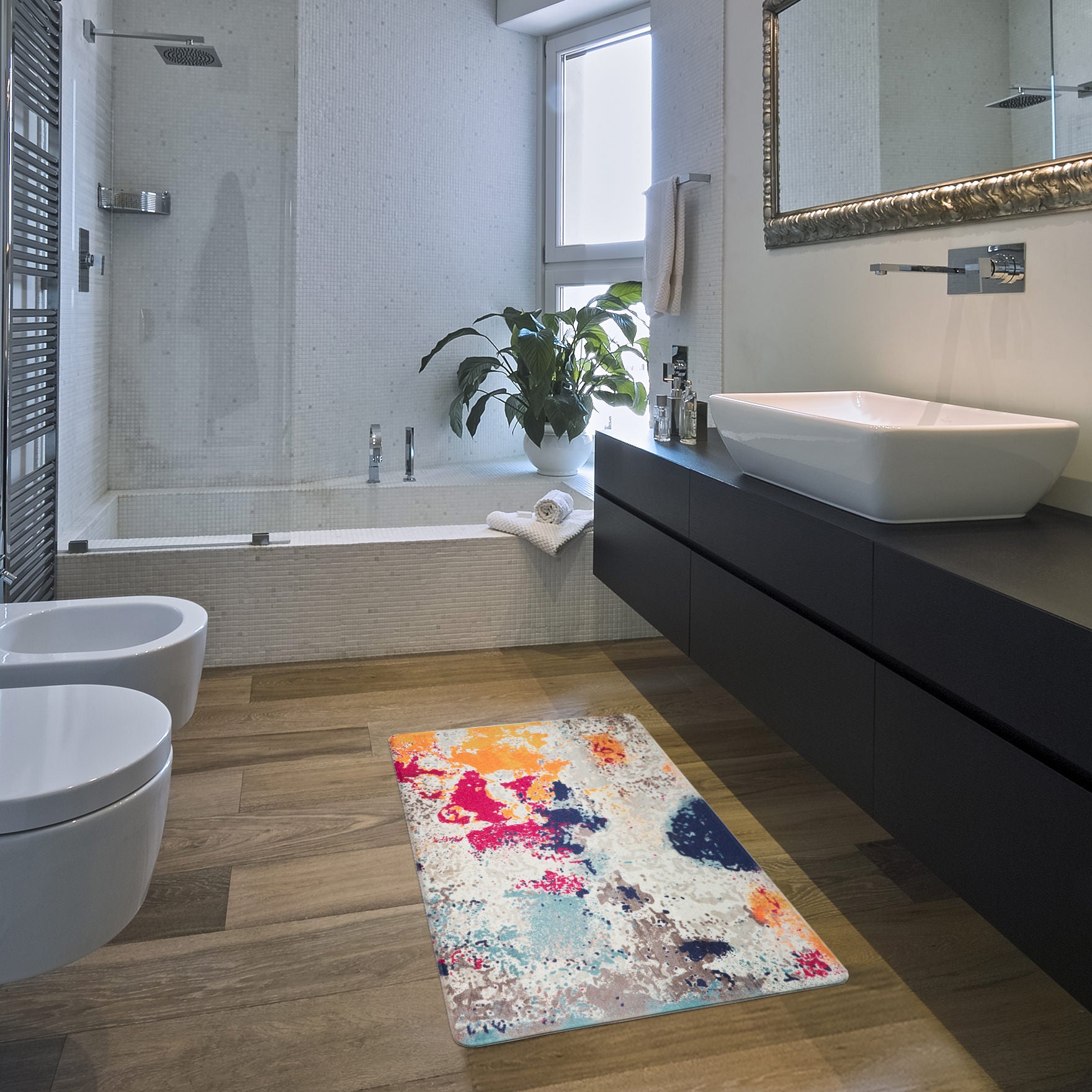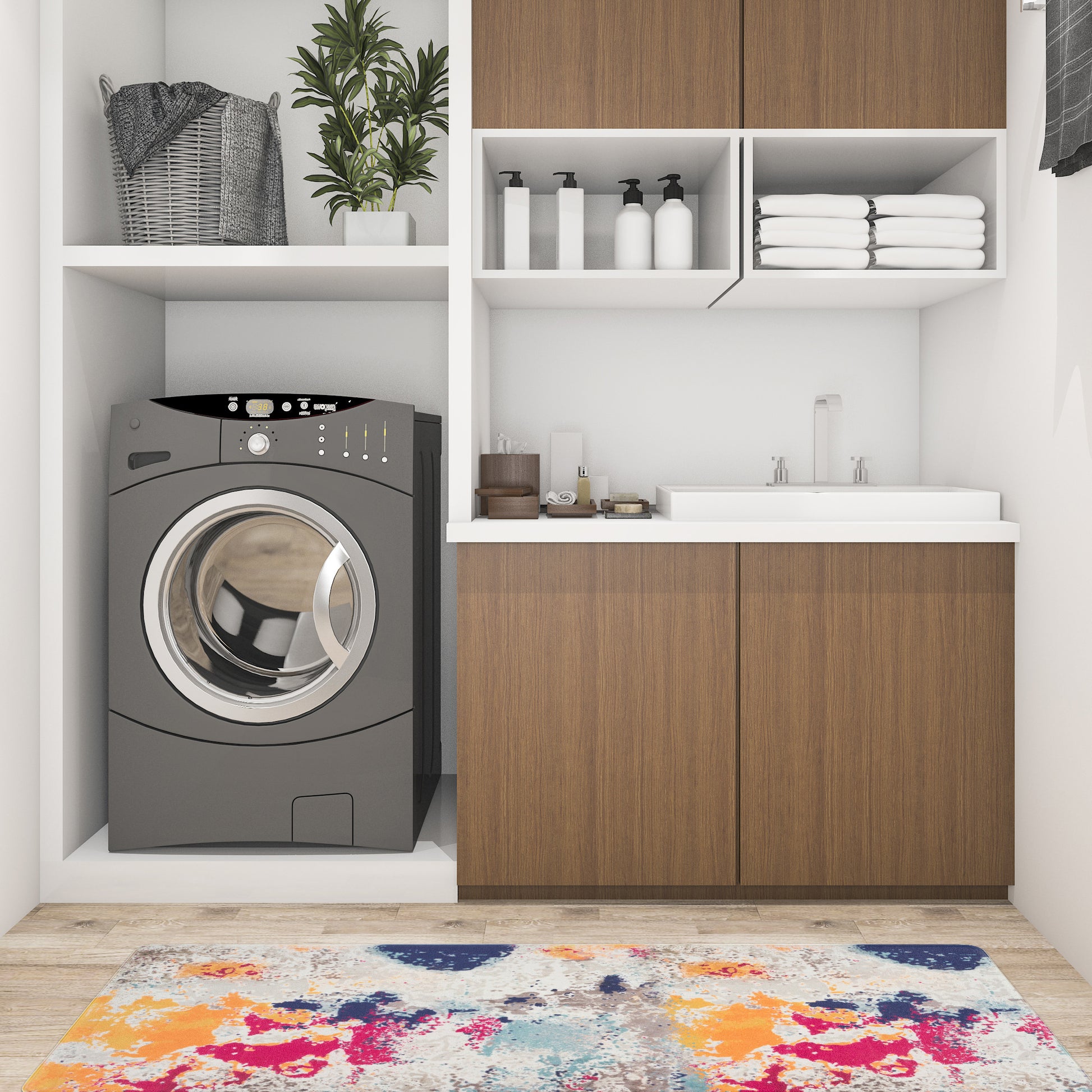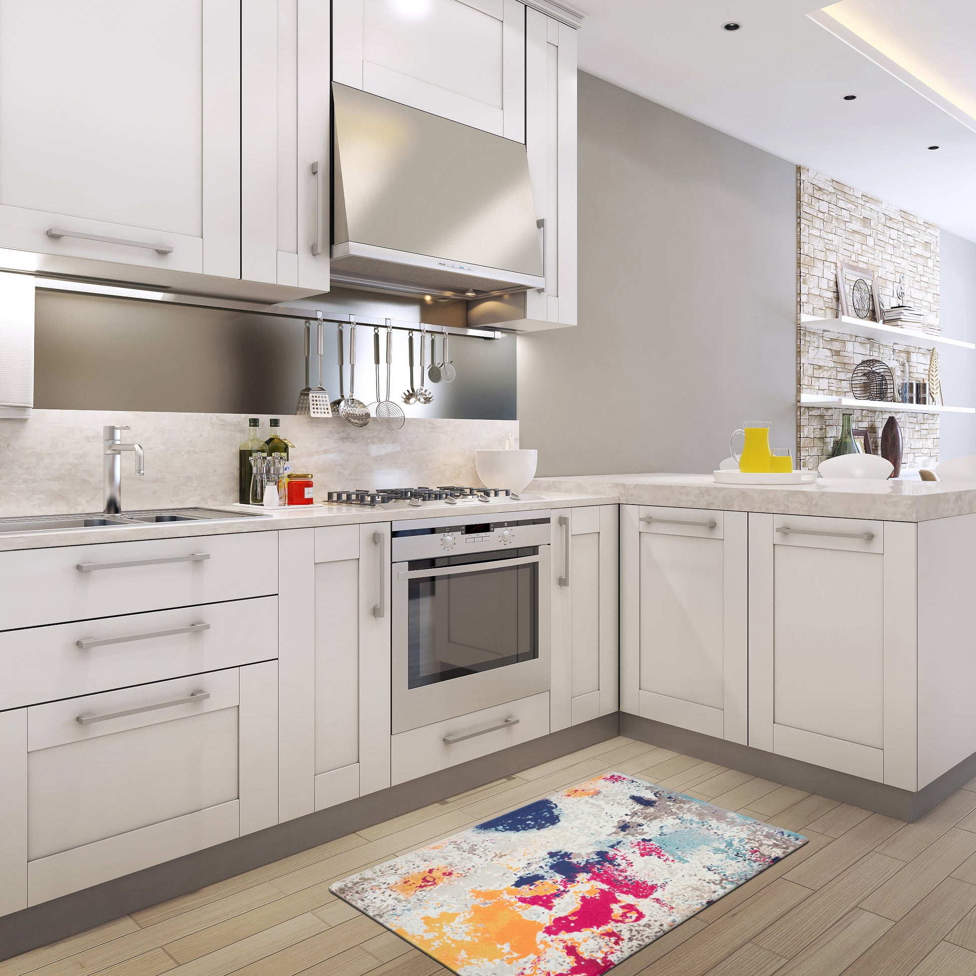 I really like the World Rug Gallery Modern Abstract Art rug I received from #tryitsampling. I decided to put this rug in front of my kitchen sink and it looks great. It's just the right size so it doesn't take up too much space. It is rubber so it's easy to clean if something gets on it