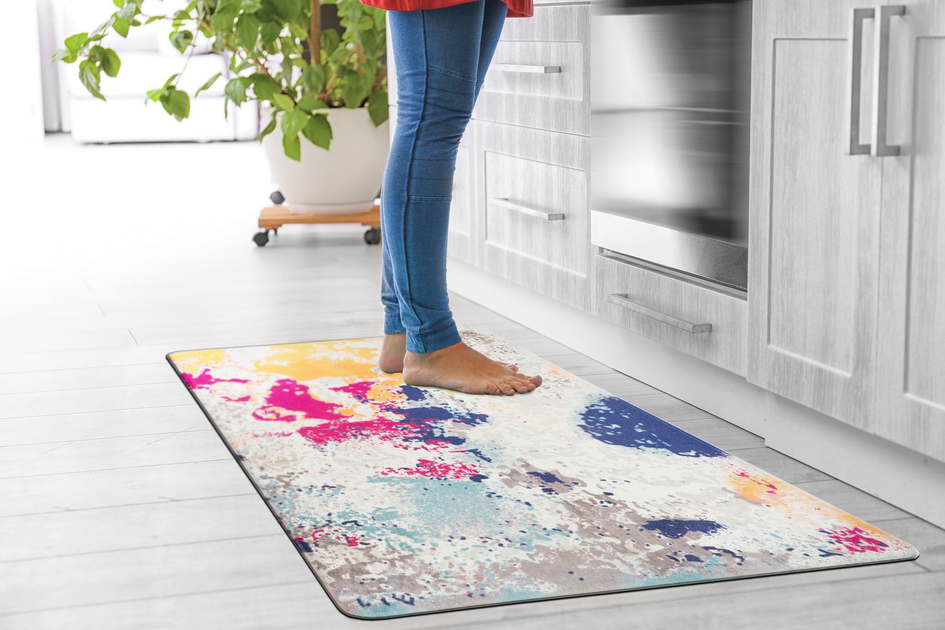 I recently tried this World Rug Gallery Modern Abstract Anti Fatigue Standing Mat and I love it! It is so cute! It fits great in front of my sink, where I do a ton of standing. It's making it easier on me to stand there and my feet no longer ache as much when I have to do the dishes. Great rug!