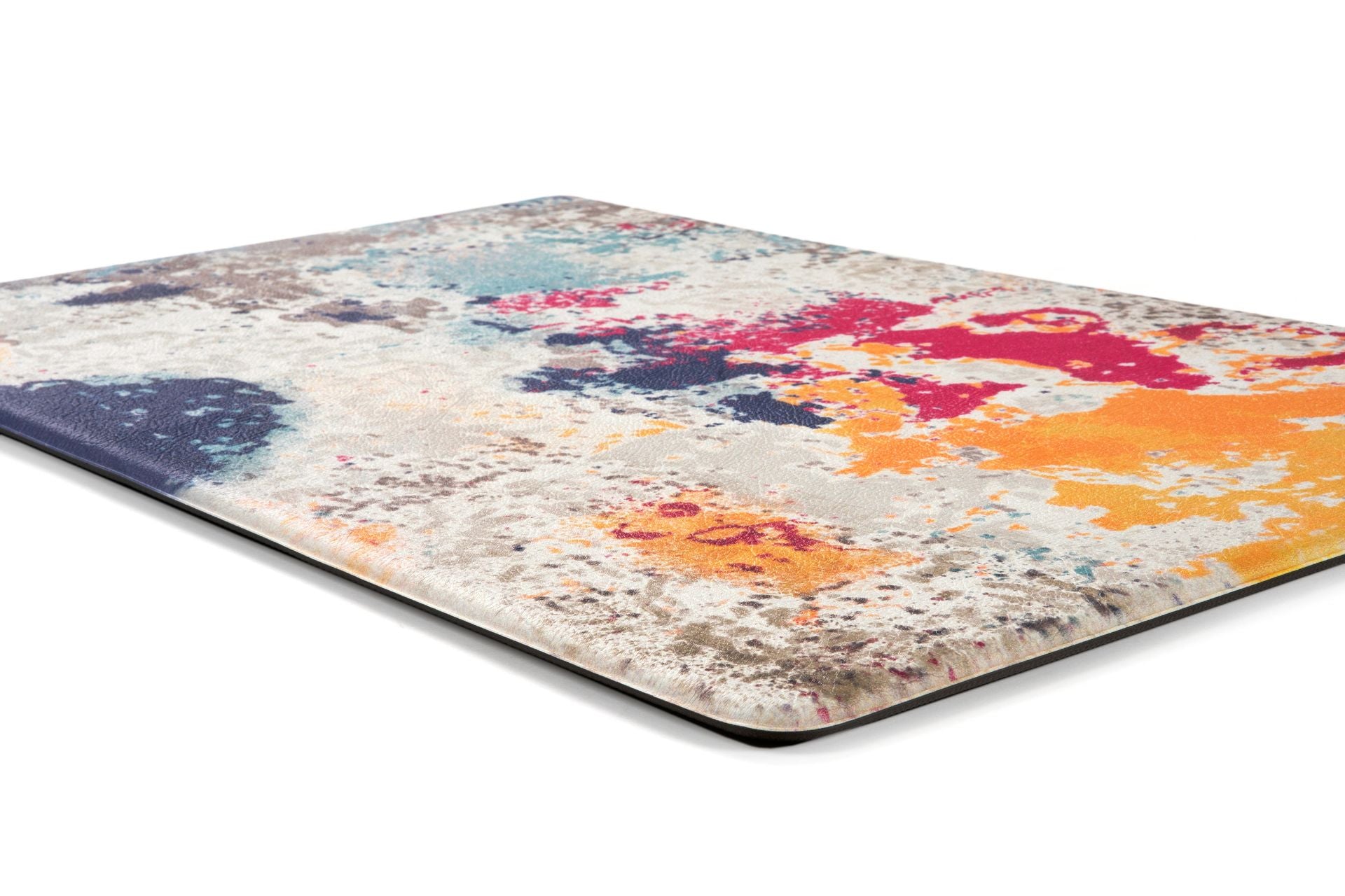 I got this anti fatigue Mat and it’s beautiful in my kitchen. The colors are vibrant and it is great to stand on for long periods of time. It feels great on my knees when standing and is thick but not a tripping hazard which is great. I want one more for my kitchen.