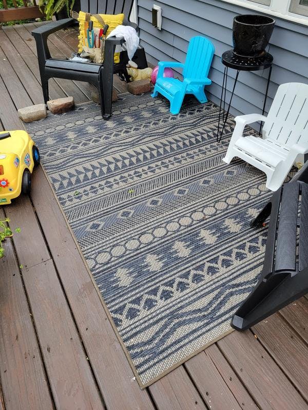 • Indoor/Outdoor rugs designed with resilience against everyday wear-and-tear, this rug is kid and pet friendly and perfect for high traffic areas of your home such as backyard, patio, deck, screened-in porch, living room, dining room, bedroom, nursery, kid's room, playroom, dorm room, study, or home office.