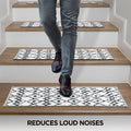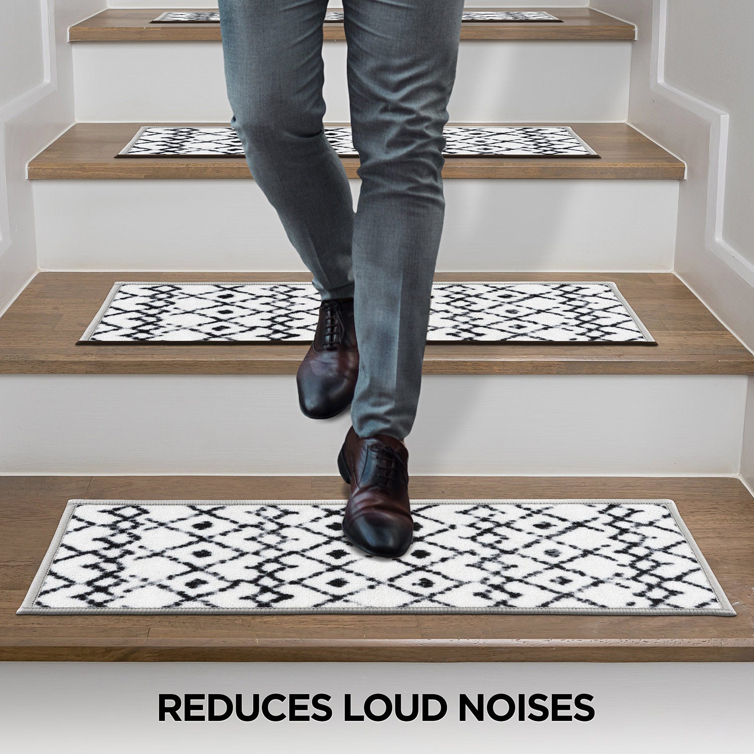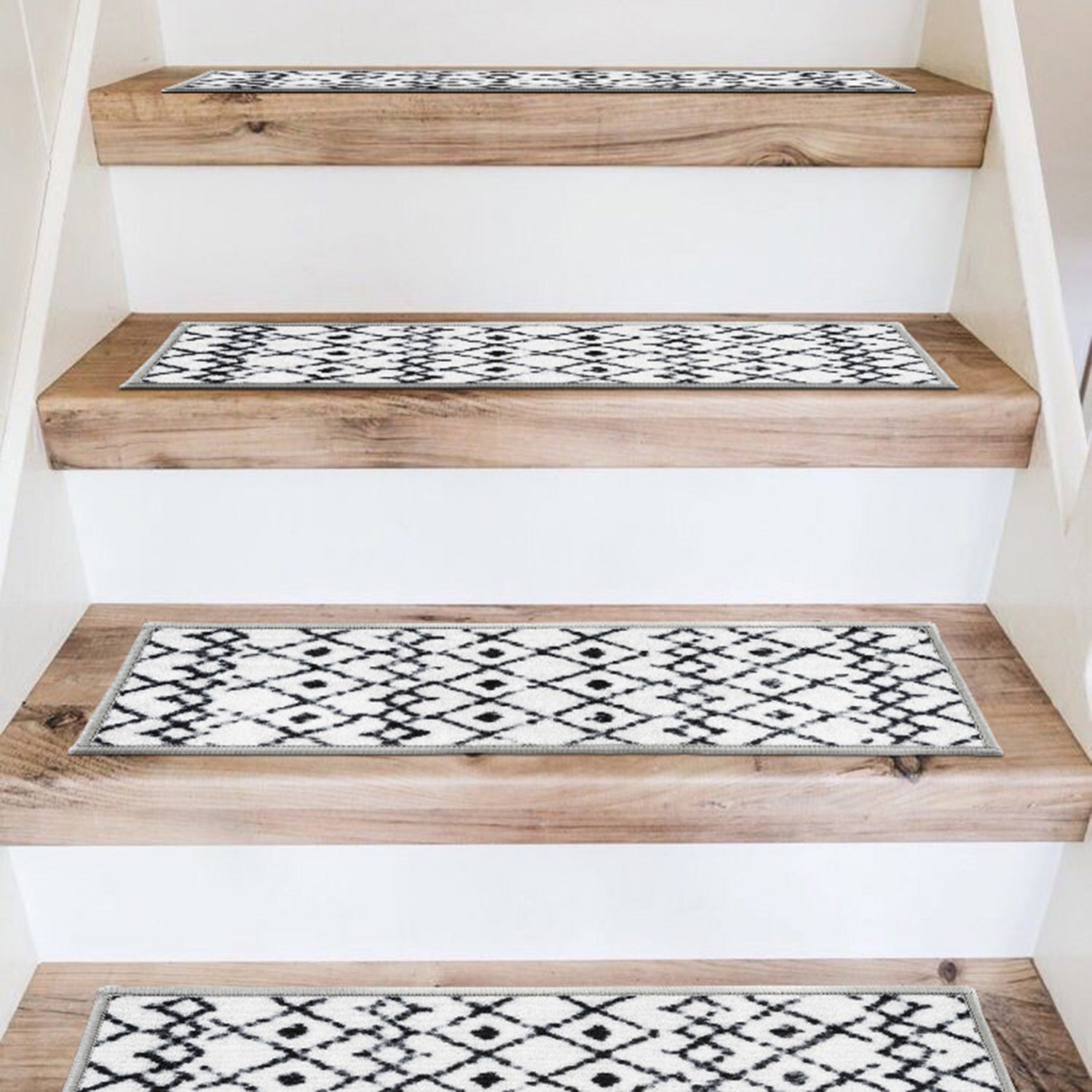 Enrich your stairs with these stunning, yet practical and decorative stair treads. The bohemian design adds interest and style to every step. The rubber backing provides additional safety for climbing kids and pets. At 26 inches x 8.6 inches, these machine washable treads are ideally sized for the majority of staircases.