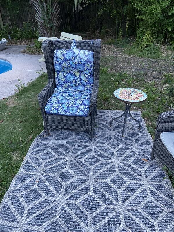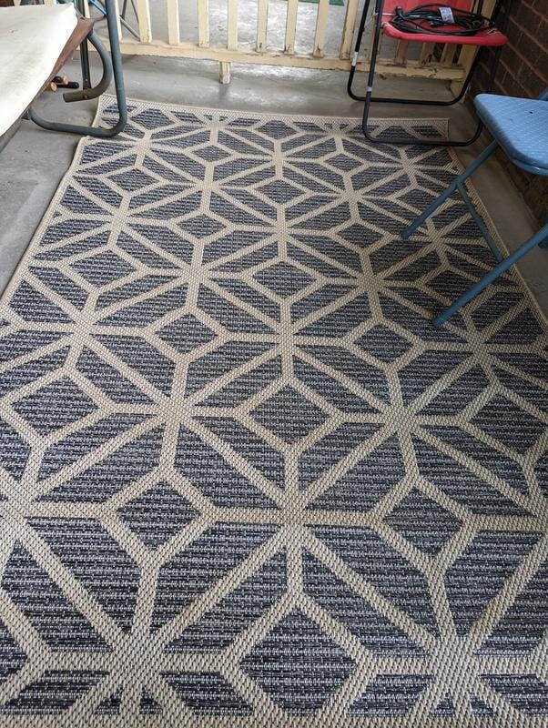 Opt for a mesmerizing motif to adorn your modern terrace with this machine-woven area rug. The intricate geometric pattern lends a contemporary flair, and the low pile makes vacuuming easy. Featuring stain-resistant polypropylene, this area rug provides a pet-friendly surface underfoot. These rugs will naturally resist stains, fading, soil and bacteria making them perfect addition to homes with kids and pets. Suits any room: This collection offers area rugs that are suitable for all indoor/outdoor spaces. Living room rugs, kitchen rugs,bedroom rugs, rugs for the entryway, office rugs, dorm rugs,dining room rugs,patio rugs,outdoor rugs.