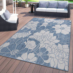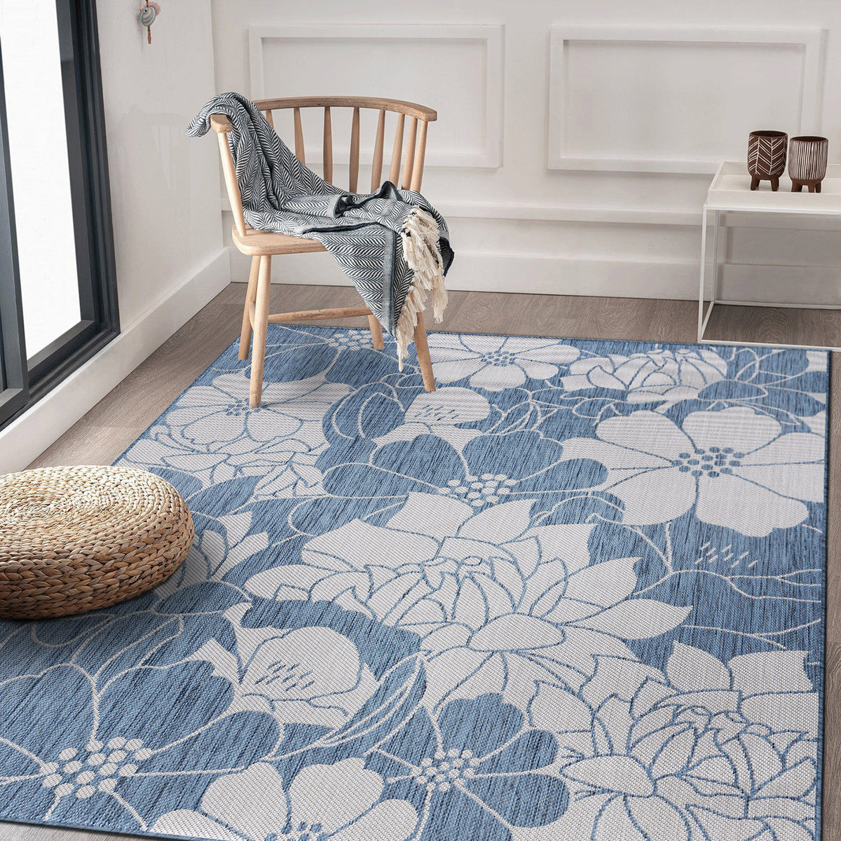 Modern Floral Flowers Textured Flat Weave Indoor/Outdoor Area Rug - Blue