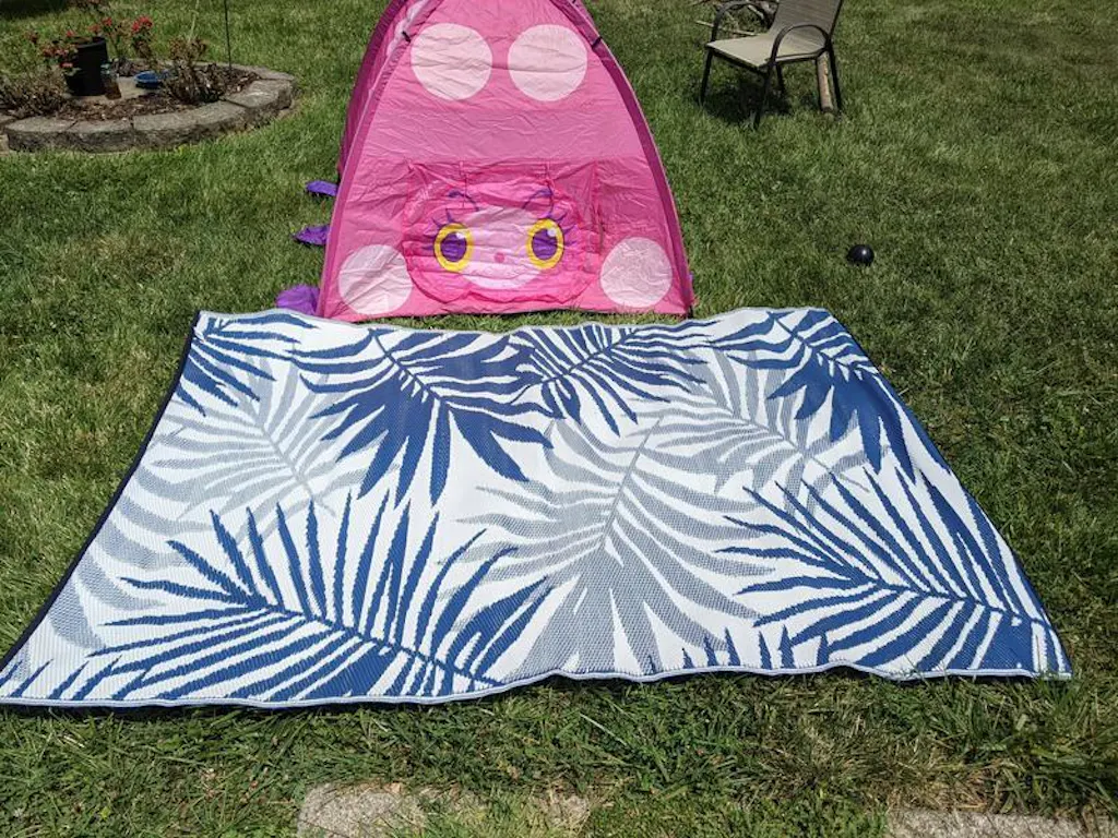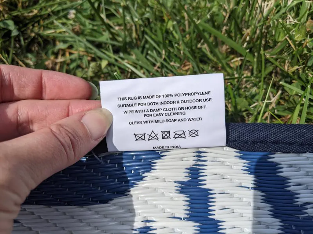 • Reversible crease-free waterproof premium recycled plastic outdoor rugs. Easy Care: These stain resistant rugs are easy to maintain. When spills and accidents occur, blot the stains, rinse with a hose, sweep or use a leaf blower to remove dirt.Rug pad recommended for indoor uses only.