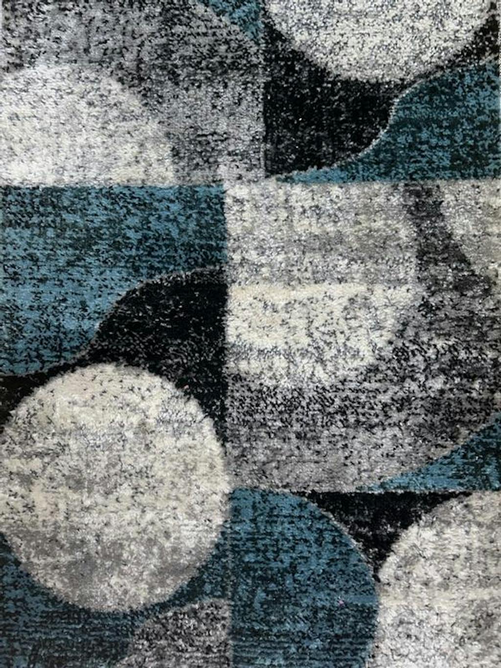 Discover the epitome of comfort and style with our modern abstract circles area rug in blue, gray, black, and ivory. This abstract area rug boasts a generous 0.39-inch pile height, delivering a velvety softness that transforms any room into a cozy haven. Effortless maintenance is ensured, thanks to its easy spot cleaning and vacuuming. Expertly woven from premium polypropylene and reinforced with a reliable jute backing, this rug is a symbol of lasting charm and strength.
