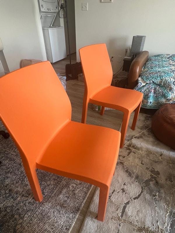 Palma Modern Outdoor/Indoor Plastic Resin Stacking Patio Dining Chairs (Set of 2) - WHITE - Orange