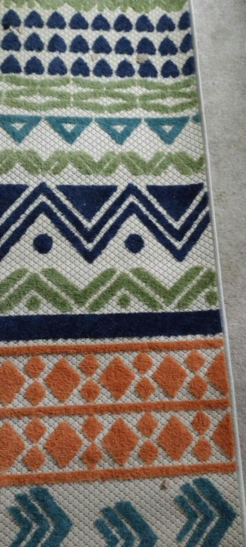 Unroll this mesmerizing rug in or out of your home. The geometric design accompanies sleek bohemian pattern and vivid colors. The durable pile height allows it to be cleaned quickly and effectively. Made with 100% polypropylene fibers, this rug epitomizes convenience, persistence and allure.For indoor or outdoor use. This collection offers area rugs that are suitable for all indoor/outdoor spaces.