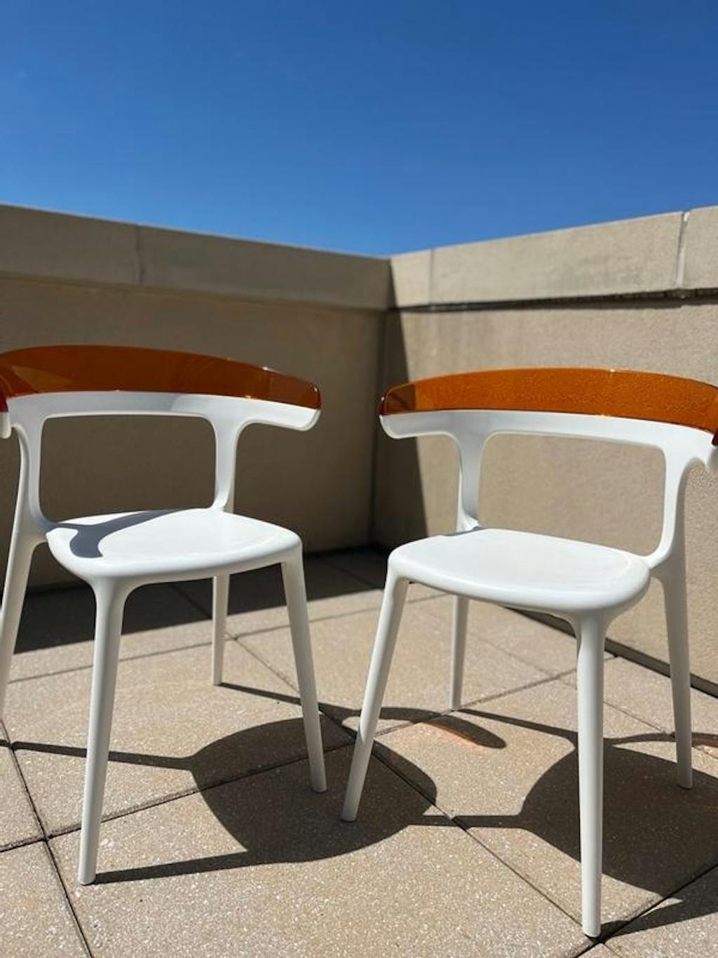 Seville Modern Outdoor/Indoor Plastic Resin Stacking Patio Dining Chairs (Set of 2) - WHITE-ORANGE - White-S Black