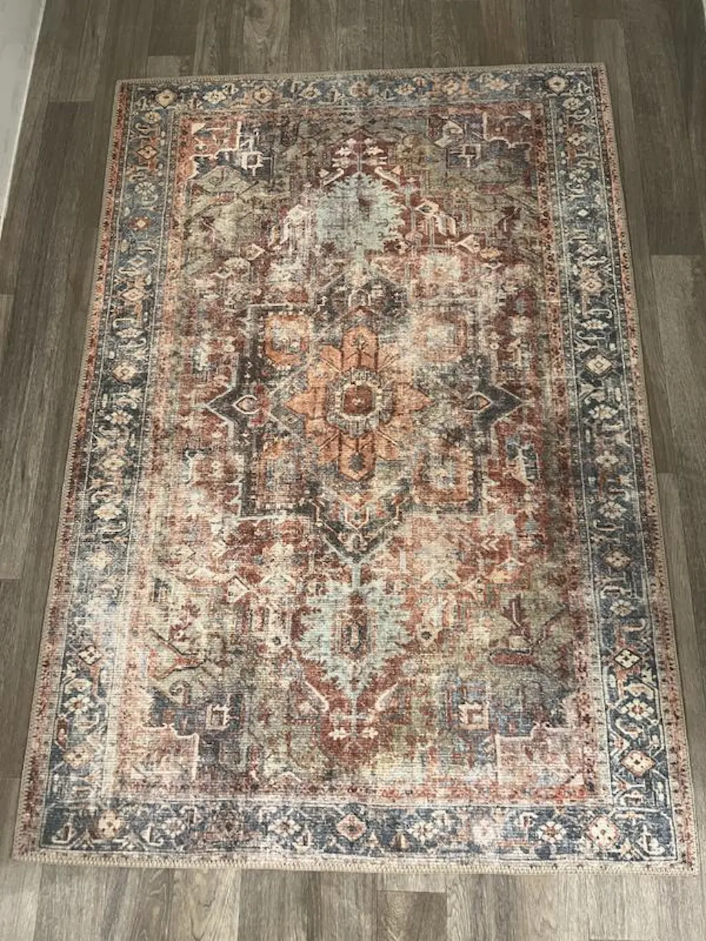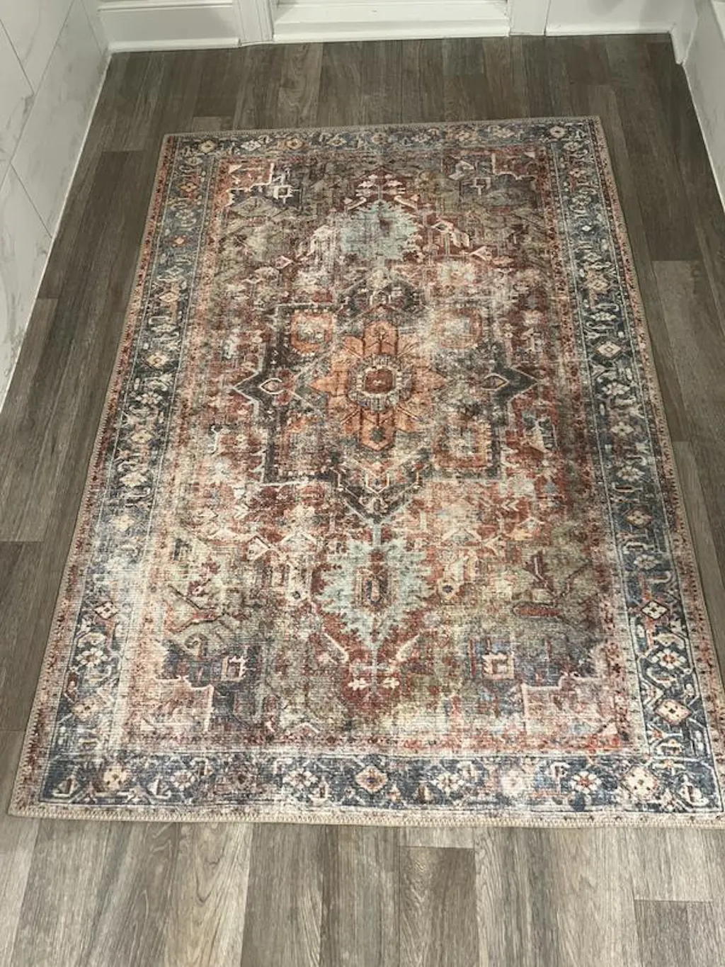 Traditional Distressed Machine Washable Area Rug - Multi