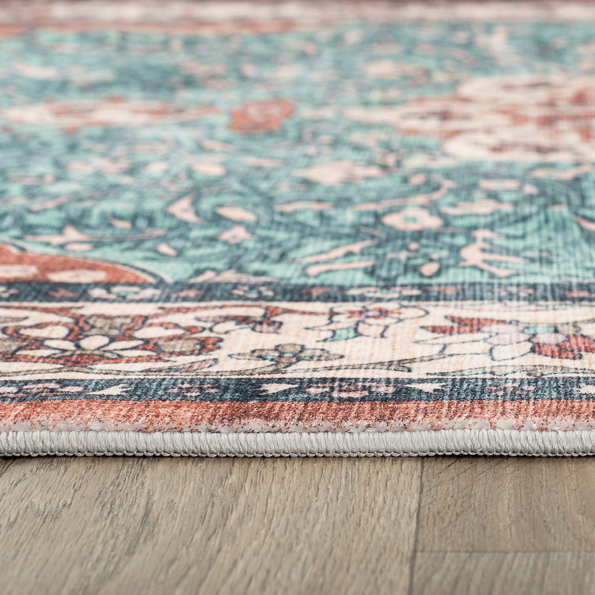 Traditional Oriental Medallion Washable Non Slip Area Rug - MULTI 5'x7' - Green