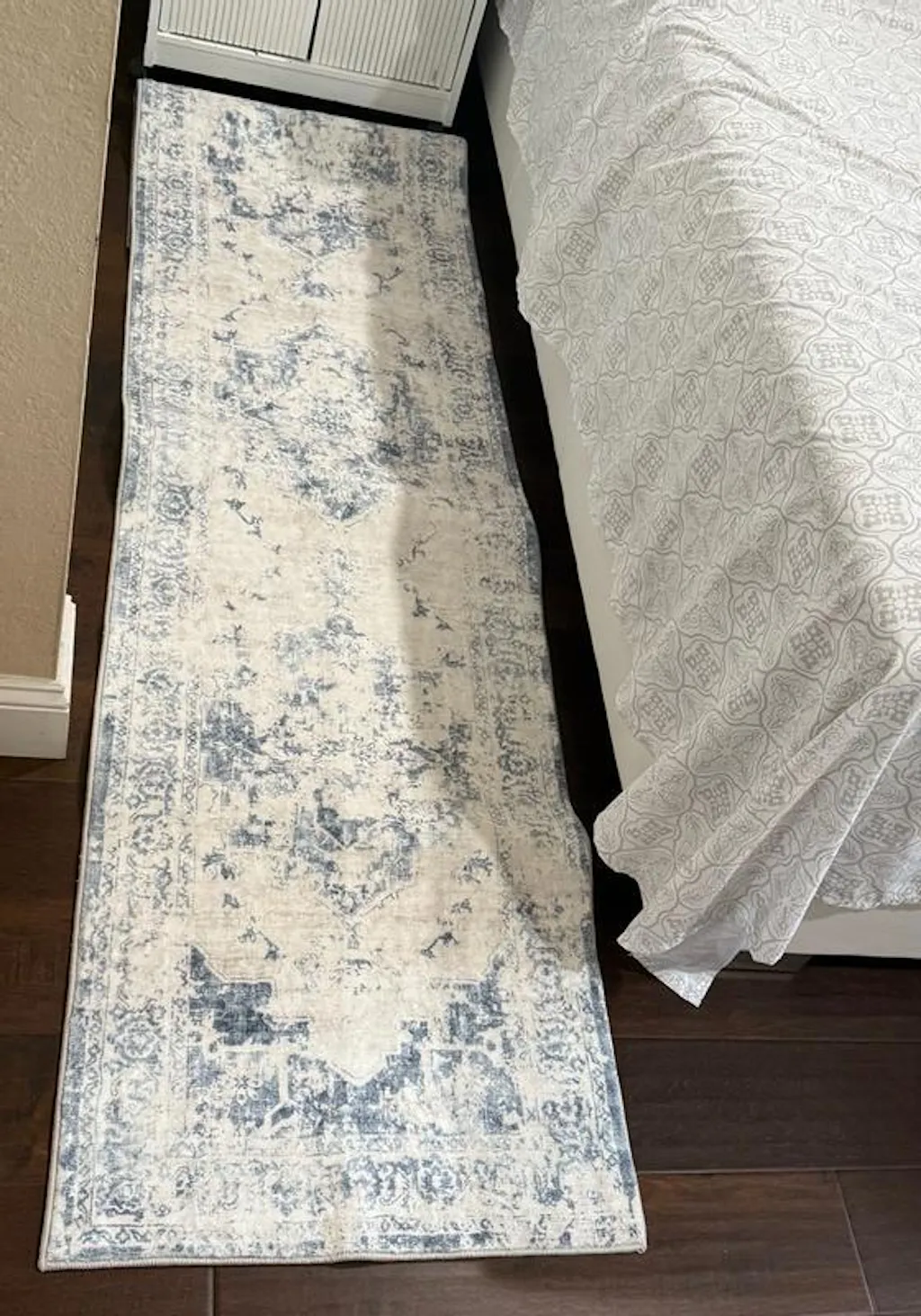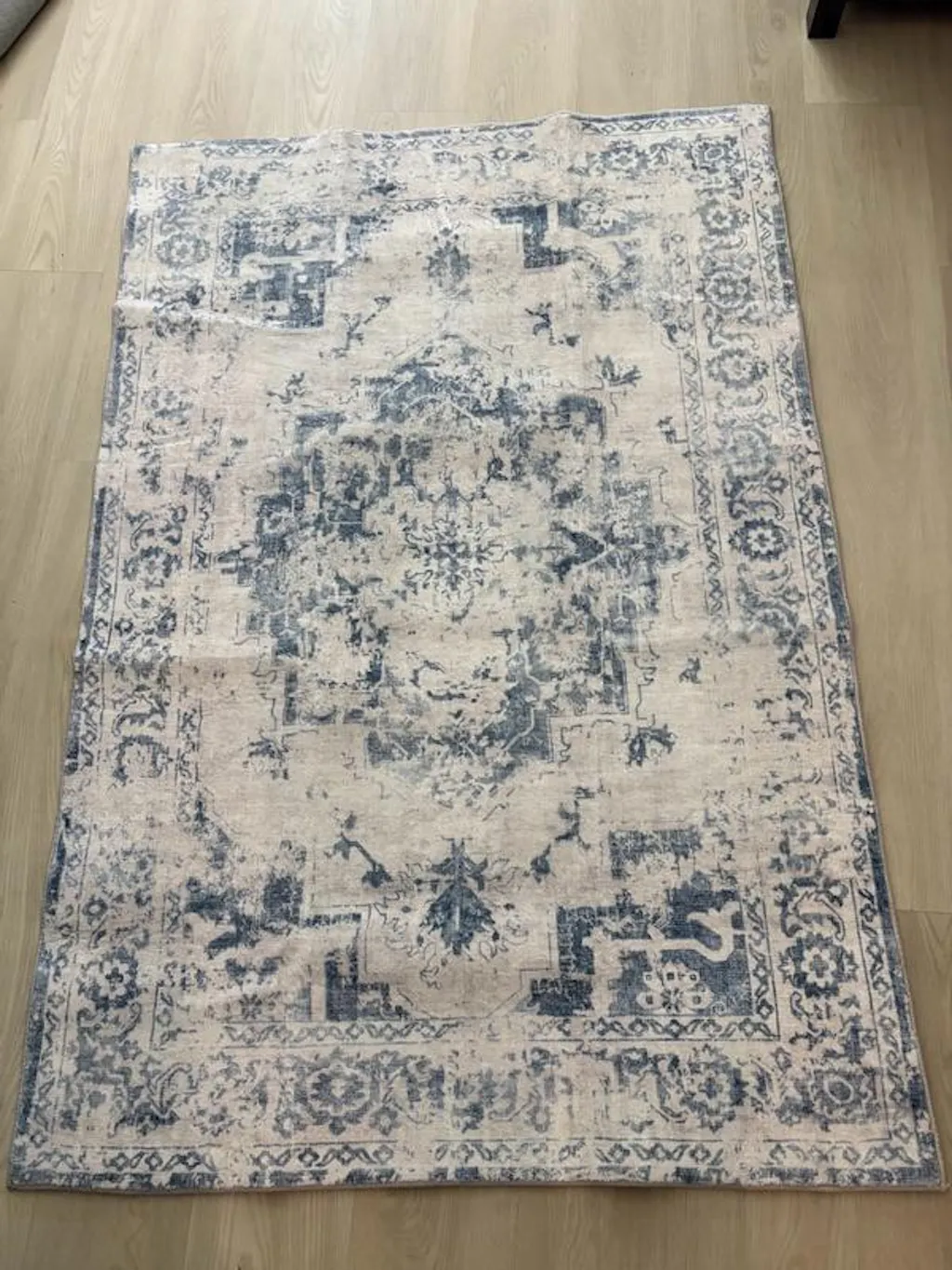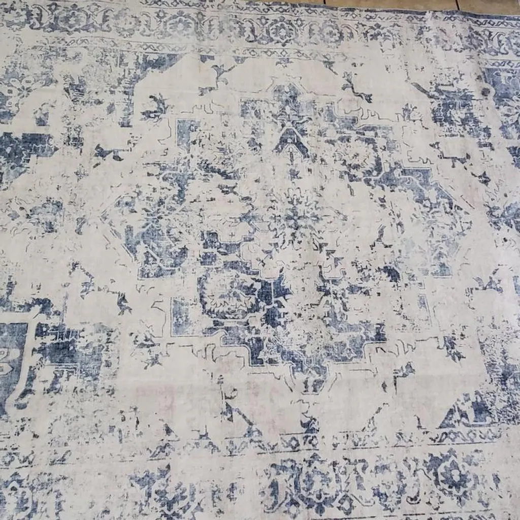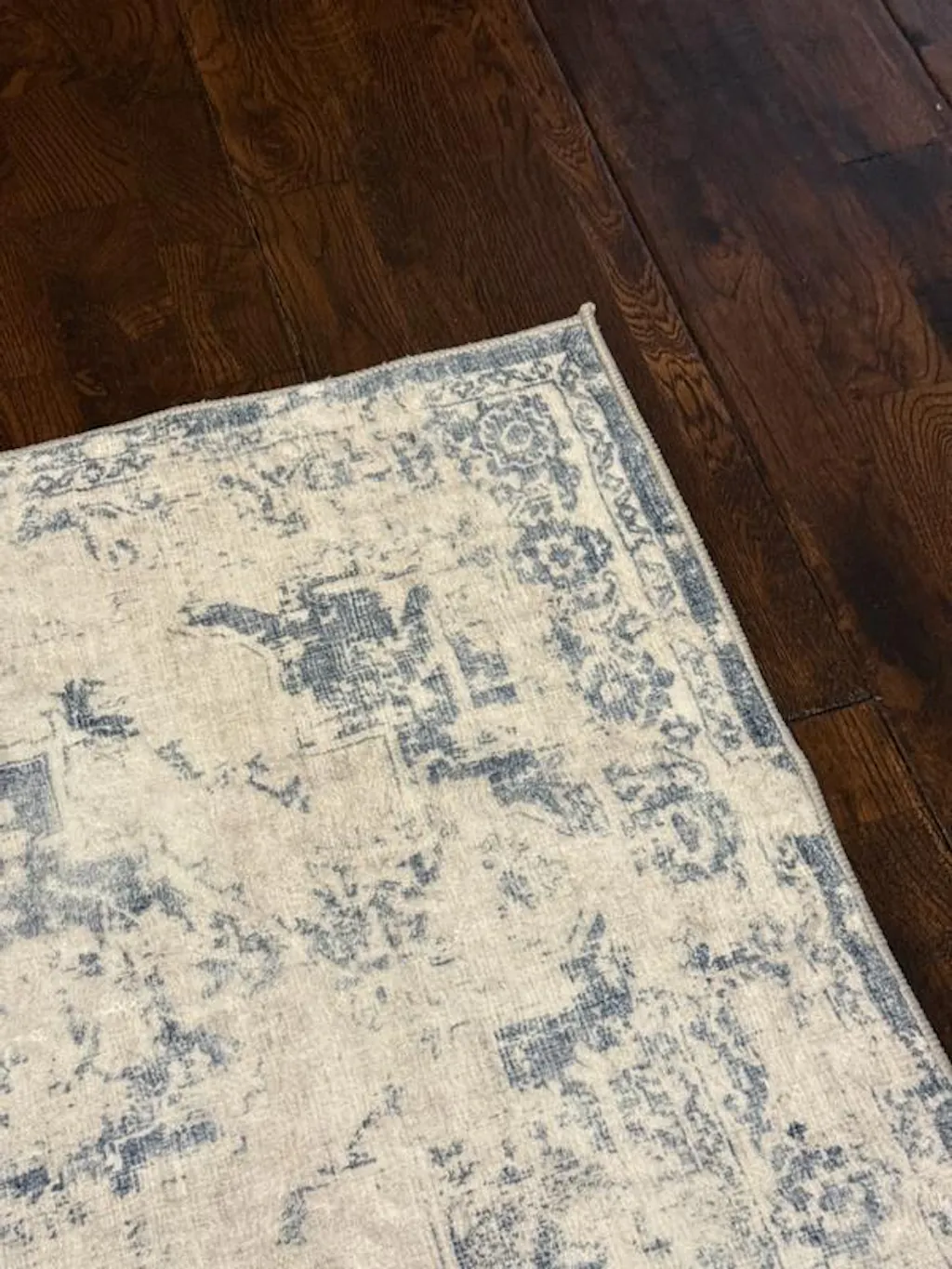 Traditional Vintage Distressed Washable Non Slip Area Rug - BLUE 5'x7' - Blue
