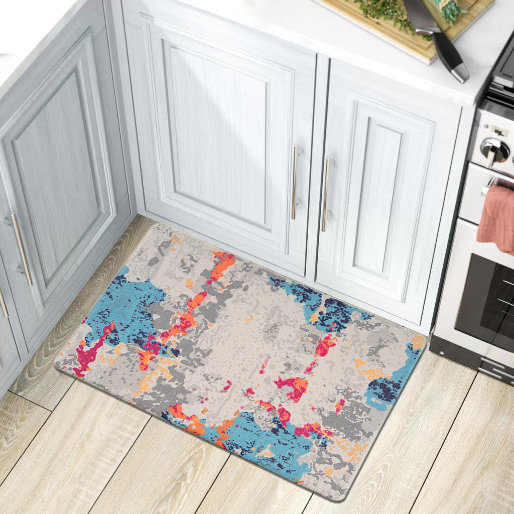 Bring this modern abstract design anti-fatigue Mat to any place in your home, from the entryway to the bathroom, on to the kitchen and laundry room. This Mat makes great use for high foot traffic areas without breaking a sweat. The Rubber backing enables it to stay in place keep durable for your usage.