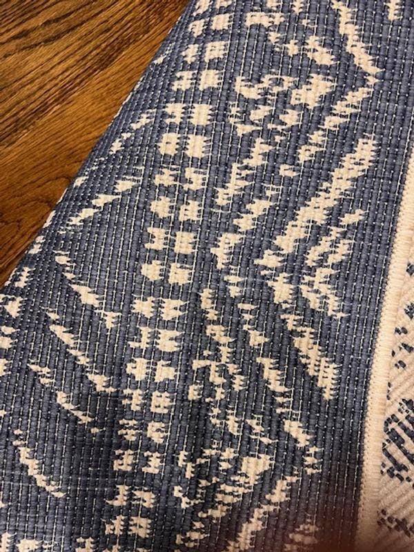 • Durable Indoor/outdoor reversible rug. Flatweave weather-resistant construction.