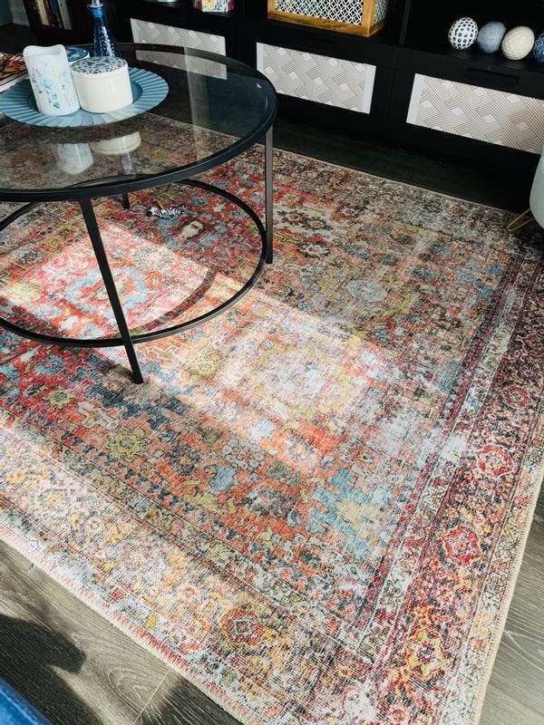 Transitional Distressed Machine Washable Non Slip Area Rug - Multi