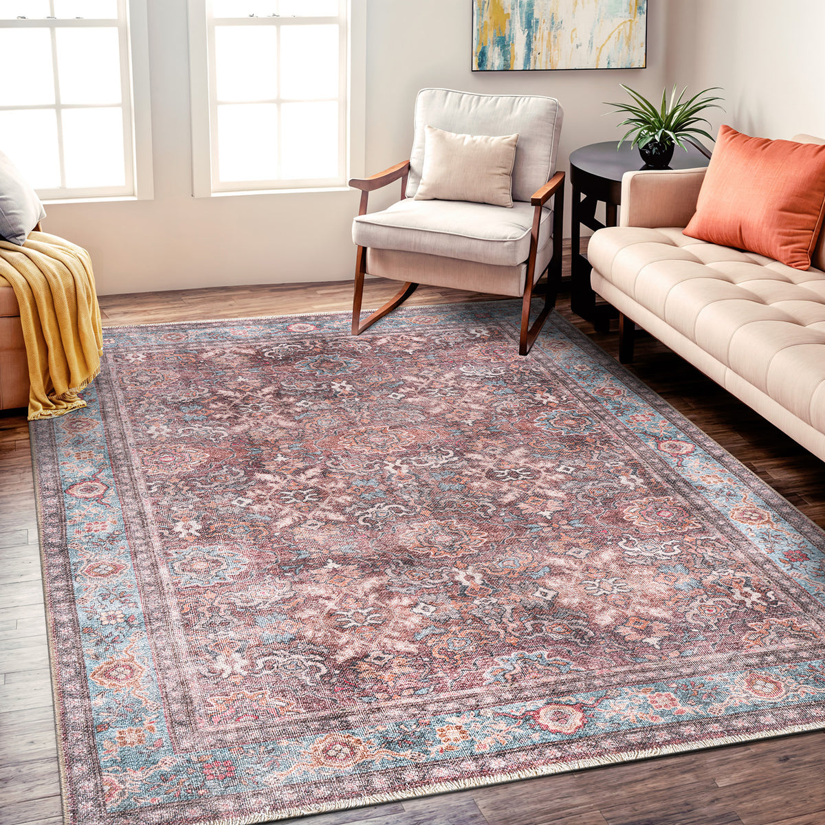 Transitional Distressed Vintage Machine Washable Area Rug - Multi
