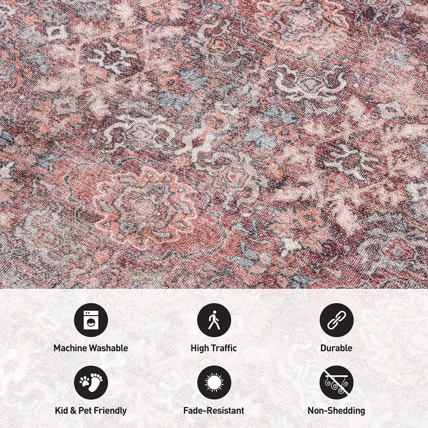 • Durable Elegance for Busy Spaces: Engineered for everyday resilience, our machine-washable rugs are ideal for high-traffic areas. Kid and pet-friendly, perfect for high-traffic areas like living rooms, dining rooms, bedrooms, entryways, nurseries, kid's rooms, playrooms, dorm rooms, studies, or home offices. The fringes on both ends enhance the rug's graceful beauty.