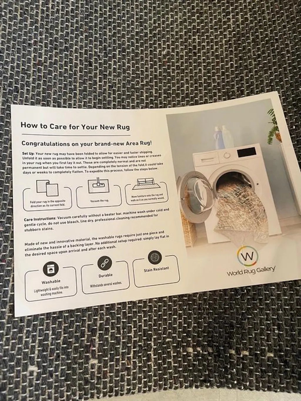 • Vacuum carefully without a beater bar. Machine wash under a cold and gentle cycle. Do not use bleach. Line dry. Professional cleaning is recommended for stubborn stains. Please note that this machine-washable rug may shrink by 1-2 inches after the first wash.