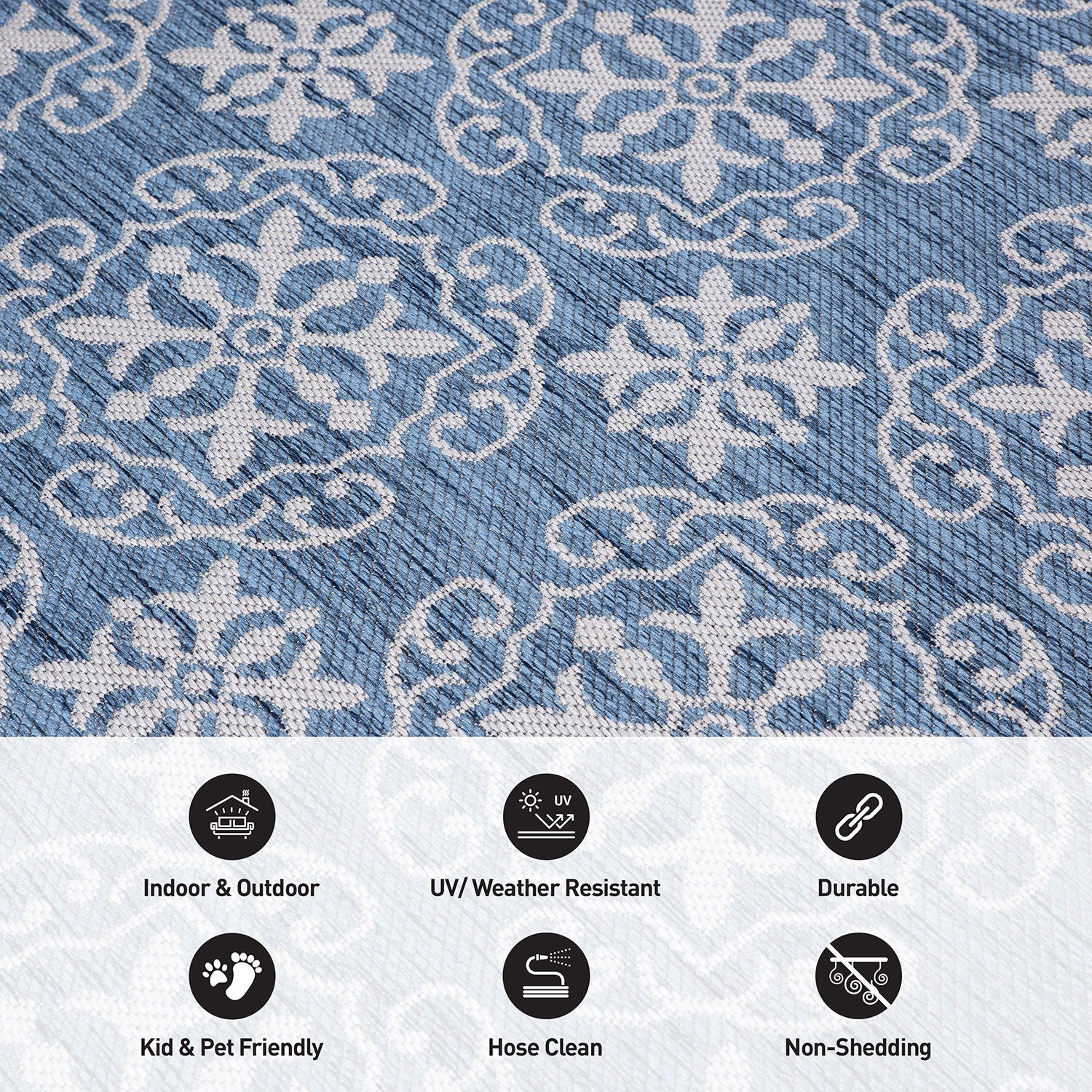 • Indoor/Outdoor area rugs designed with resilience against everyday wear-and-tear, this rug is kid and pet friendly and perfect for high traffic areas of your home such as backyard, patio, deck, screened-in porch, sunroom, living room, dining room, bedroom, entryway, nursery, kid's room, playroom, dorm room, study, or home office. Flatweave weather resistant construction. Rug pad is recommended for indoor use only.