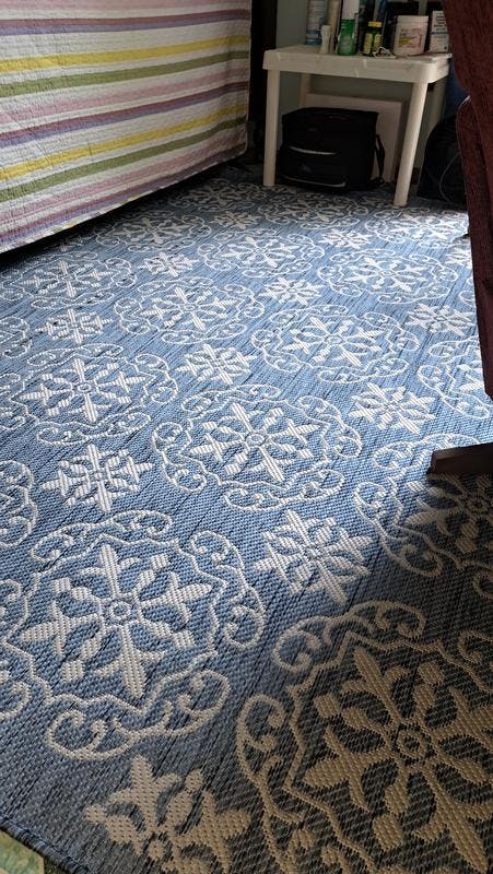 • Indoor/Outdoor area rugs designed with resilience against everyday wear-and-tear, this rug is kid and pet friendly and perfect for high traffic areas of your home such as backyard, patio, deck, screened-in porch, sunroom, living room, dining room, bedroom, entryway, nursery, kid's room, playroom, dorm room, study, or home office. Flatweave weather resistant construction. Rug pad is recommended for indoor use only.