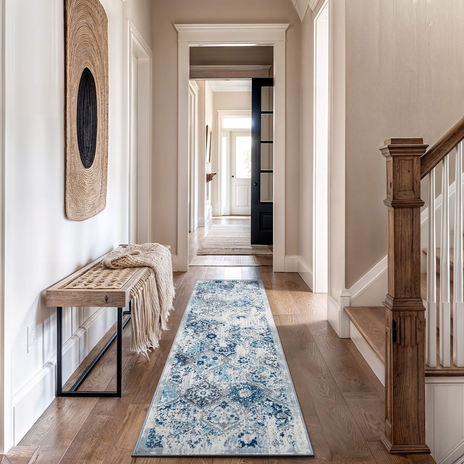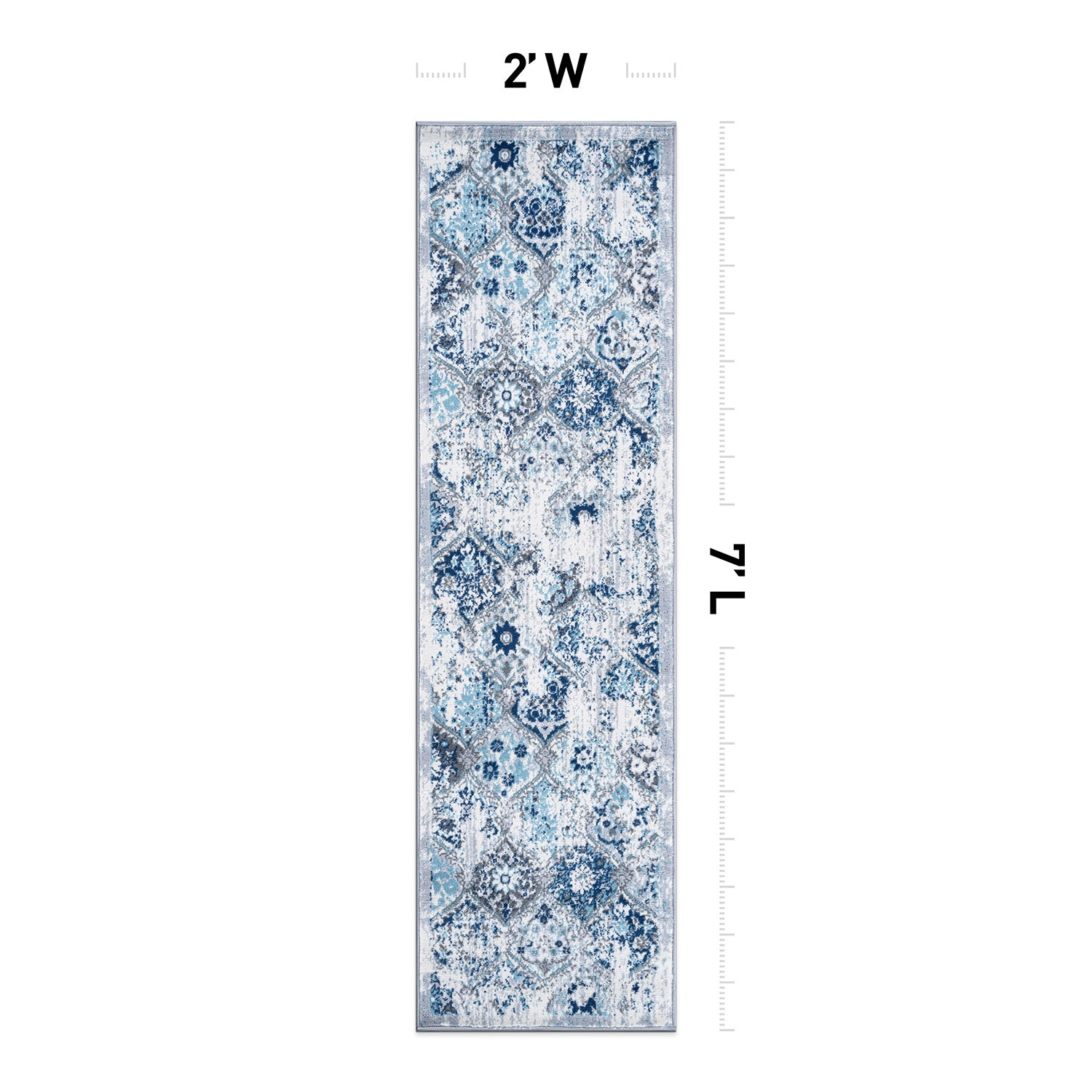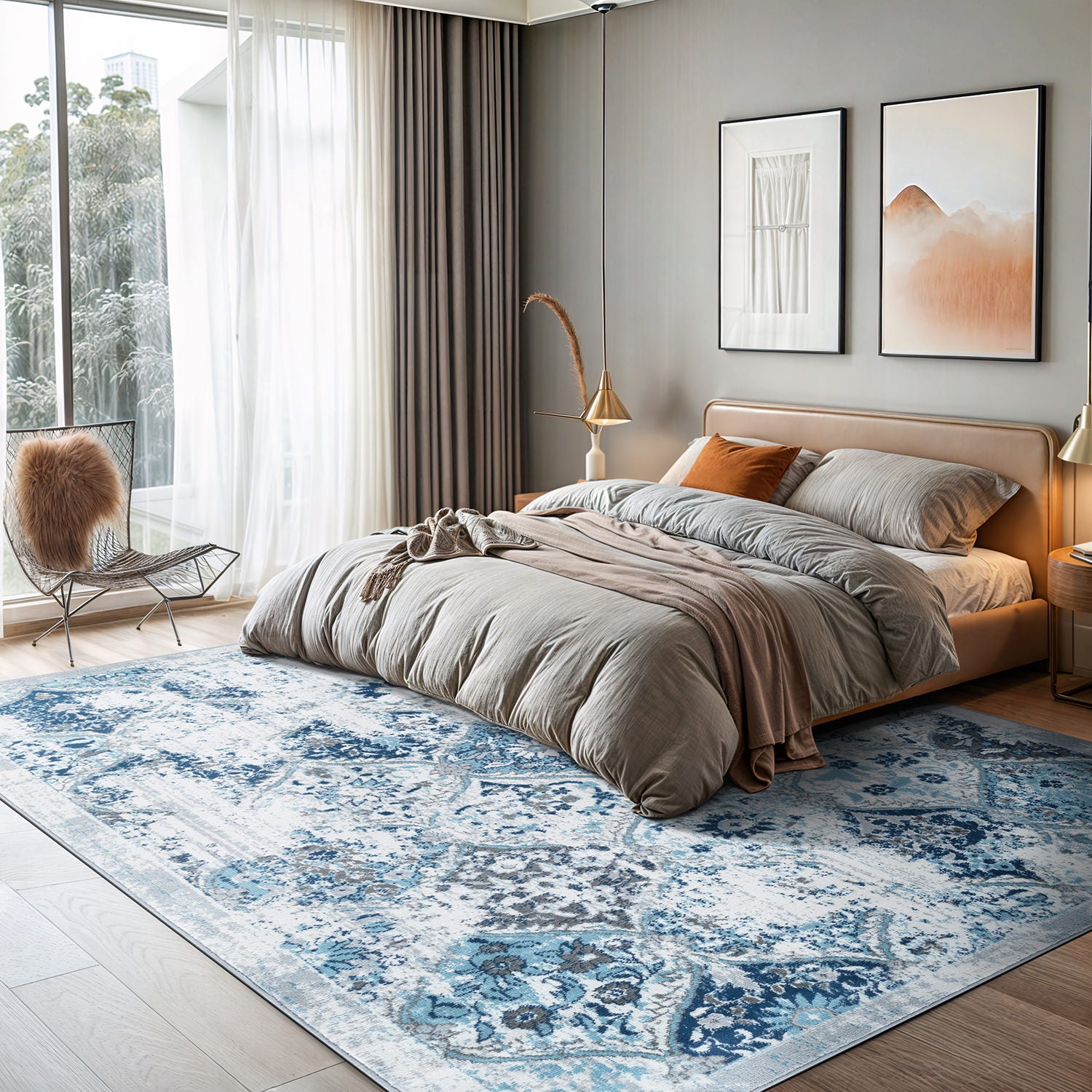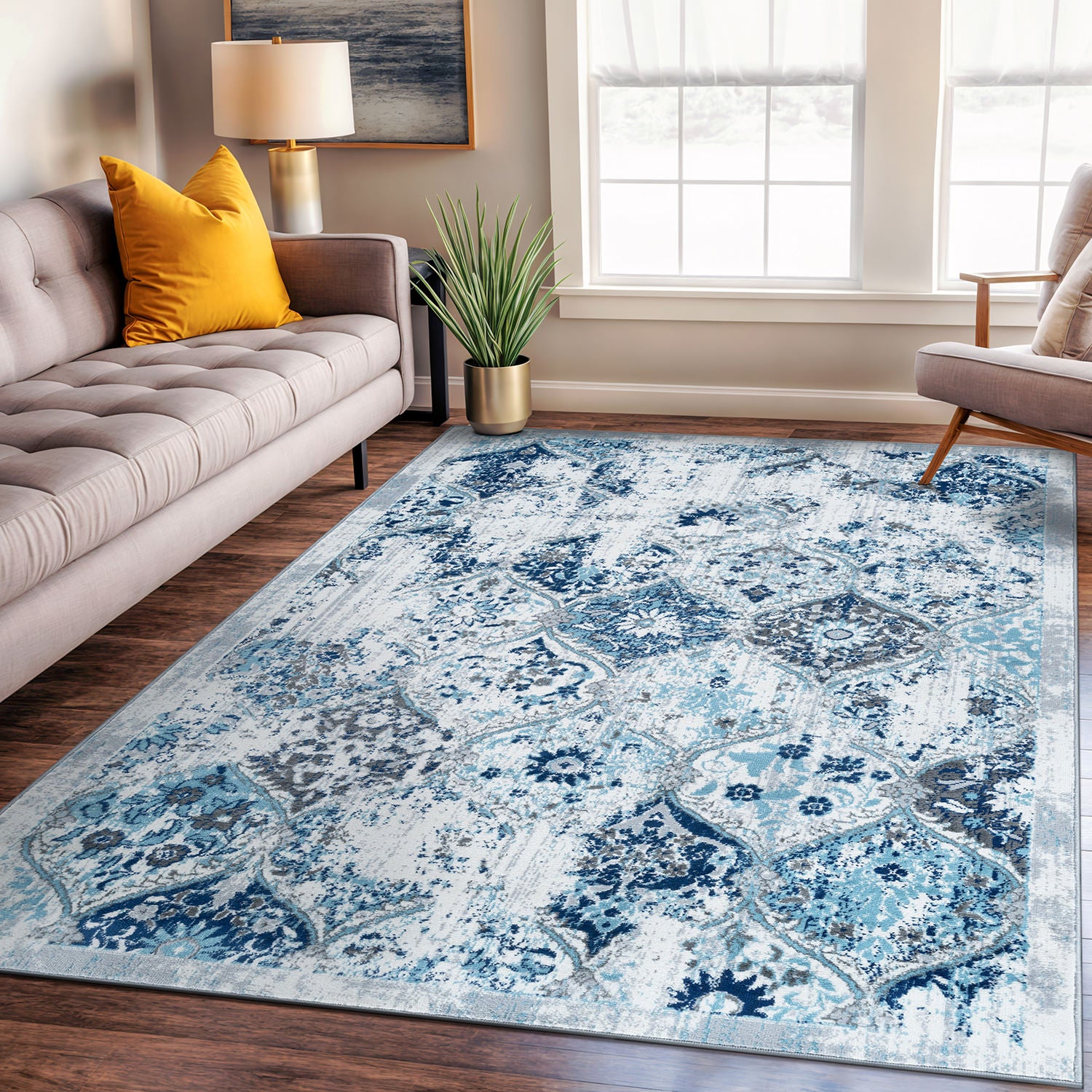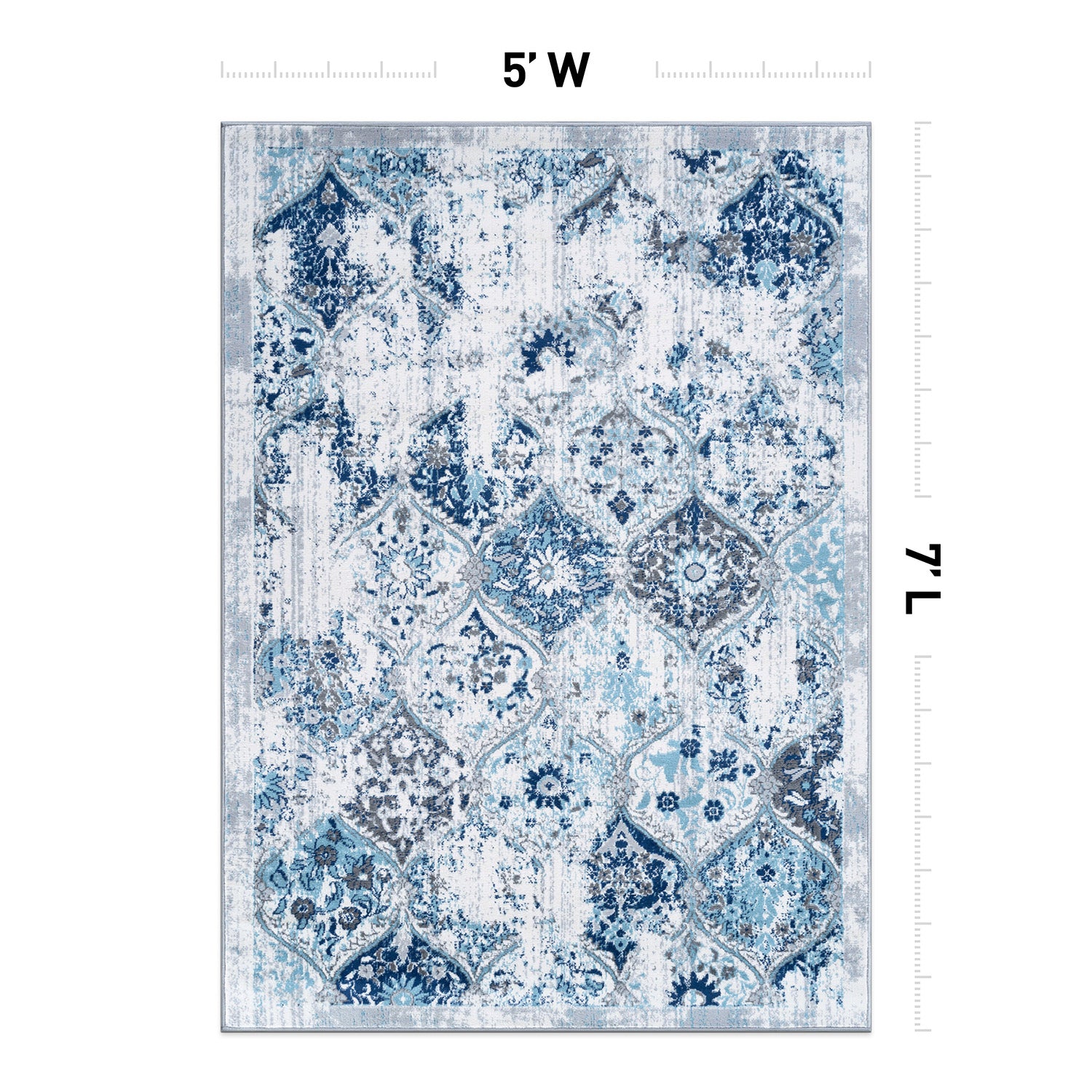 This gorgeous rug has been a wonderful addition to my home. The rug features a beautiful Moroccan inspired trellis pattern with a bordered design, which adds a touch of elegance and sophistication to my living room. The rich blue color is vibrant and complementing a variety of decor styles. The quality of the rug is impressive. The material is soft and plush underfoot. It provides a cozy and comfortable feel. It is made from high quality material which makes it durable and resistant to stains and fading. It has non slip backing. It stays securely in place, even without an additional rug pad. This is great for safety and convenience. The low pile height makes it easy to clean and maintain. It does not shed and my space looks neat and tidy. The size of 5'x7' is perfect for creating a cozy seating area or defining a space within a larger room. I have received numerous compliments on the rug with guests noting how it enhances the overall aesthetic of my home. It is a beautiful pieces to add style, comfort and quality to my living space. Its beautiful design, durable construction and practical features make it a worthwhile investment.l highly recommend this rug to all.
