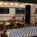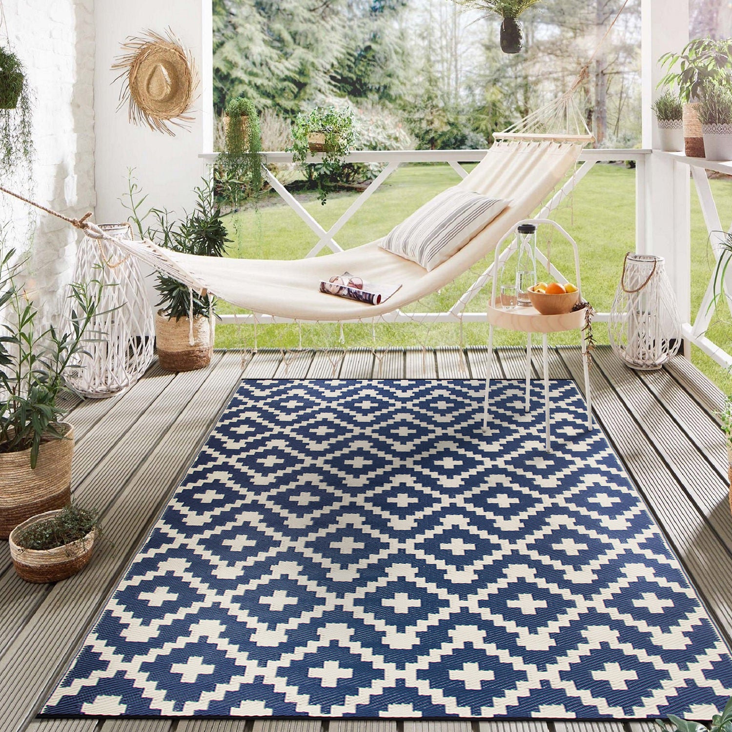 I have been looking for an outdoor rug for my front porch for months and this is perfect. I love the colors and it’s reversible. If I want to do a white side with the blue lines I can do that as well but I figured white will get dirty in South Carolina so I am keeping it on the blue side. We use our front porch very often and it’s nice to have some thing in case the kids drop food or juice and I don’t have to then clean the whole porch. I can just easily clean the rug.