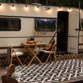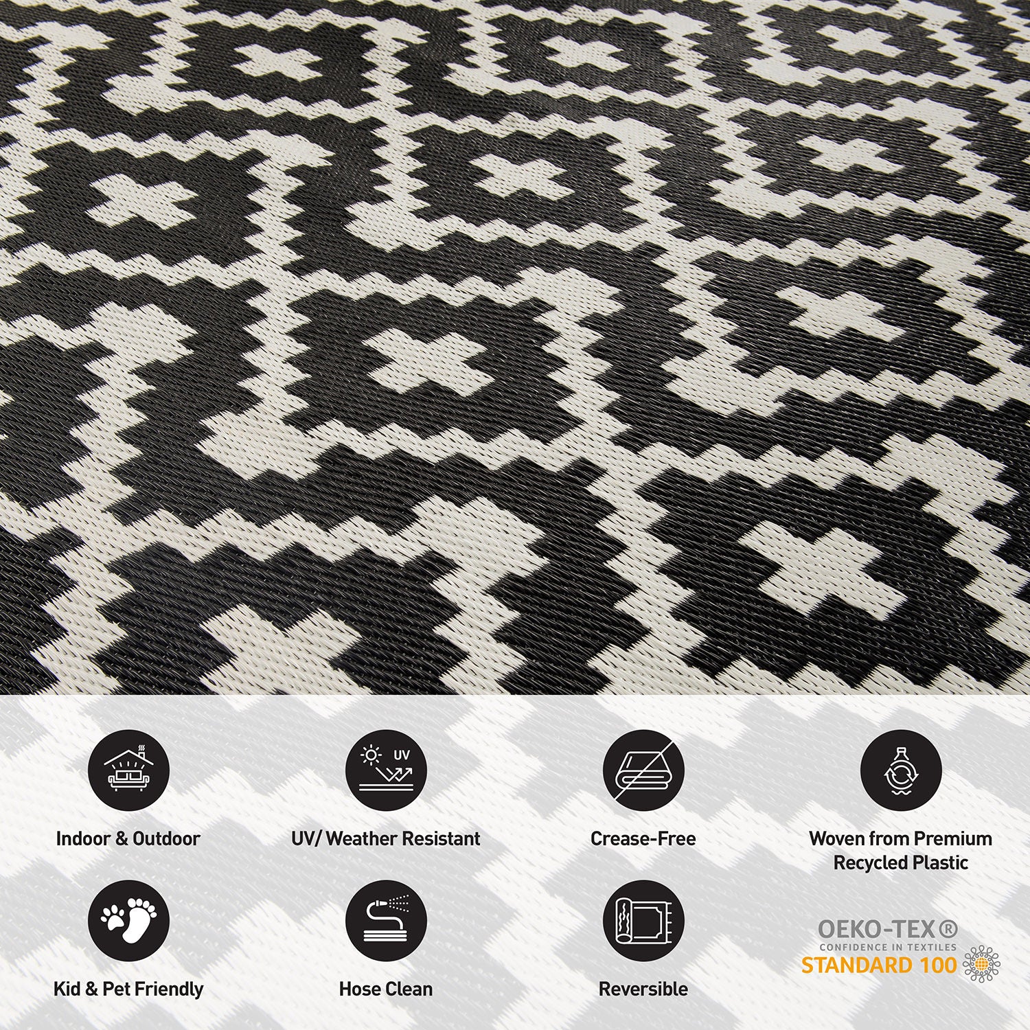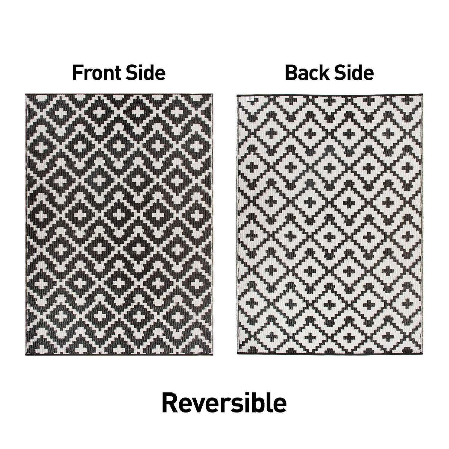 World Rug Gallery Trellis Geometric Reversible Plastic Outdoor Rugs - BLACK 5' X 7 is perfect for everyday use. The rug is long and wide enough to have my chairs underneath the patio. You can use it for RVs, camping, patio decks, sunroom, playrooms, traveling, etc. I absolutely love the fact that it is easy to clean, all I have to do is use a hose and soapy water to get out any dirt it comes across. Also, I can leave the rug in the sun to air dry for a long time. World Rug Gallery is very versatile, it has a reversible side with geometric bohemian designs and elegant colors. I can use this rug both indoors and outdoors, I highly recommended it to everyone.