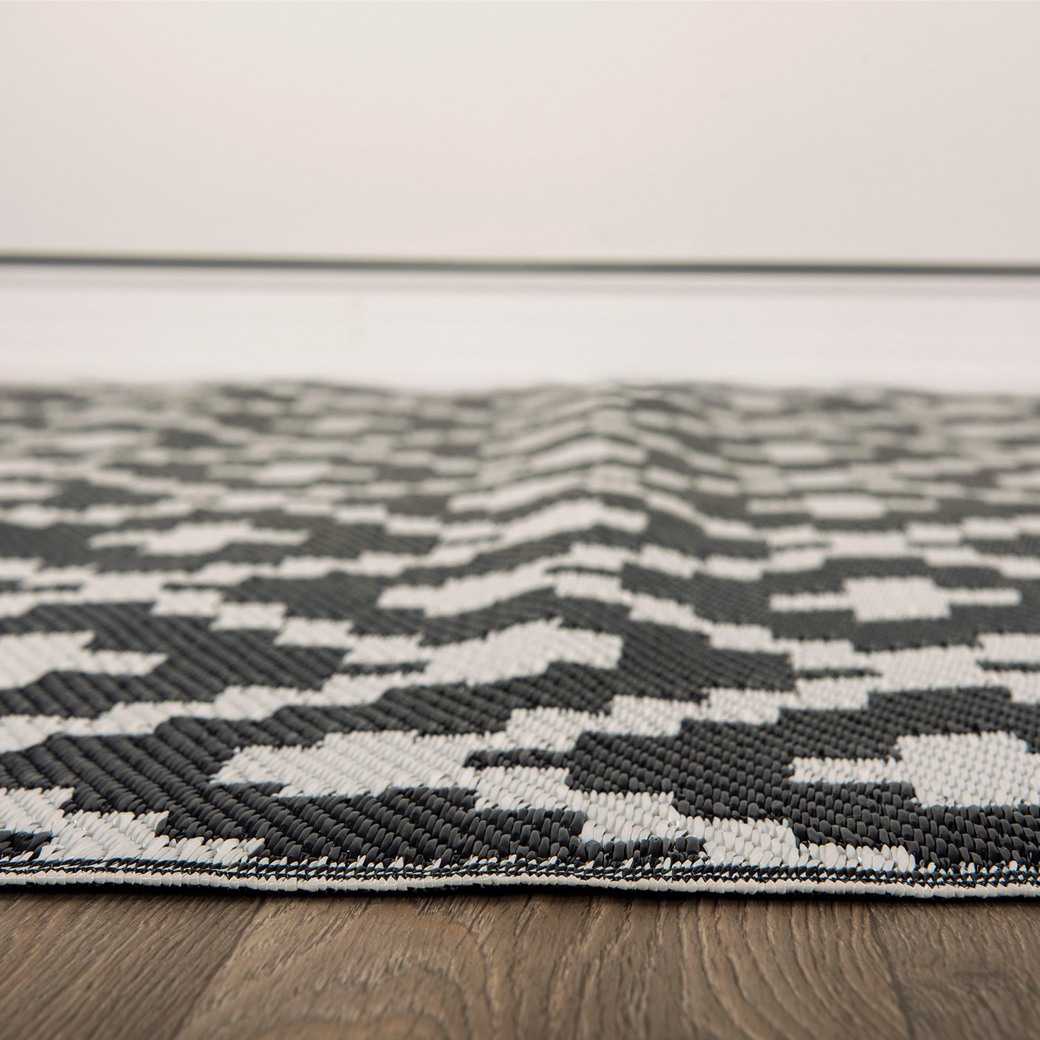 The world rug gallery trellis I put in my front porch.I like that it's reversible I can use any side of the rug.I like the black and white colors.my chairs are black along with the trash cans.the rug makes the porch look different.i only have folding chairsit still make my porch look nice