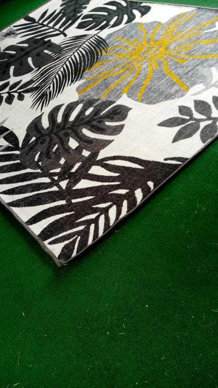 Liven up your indoor or outdoor décor with this tropical flatwoven rug. It features a floral palm design and vibrant colors.It is easy to maintain by rinsing with a garden hose with soapy water and air drying.For indoor or outdoor use. This collection offers area rugs that are suitable for all indoor/outdoor spaces.