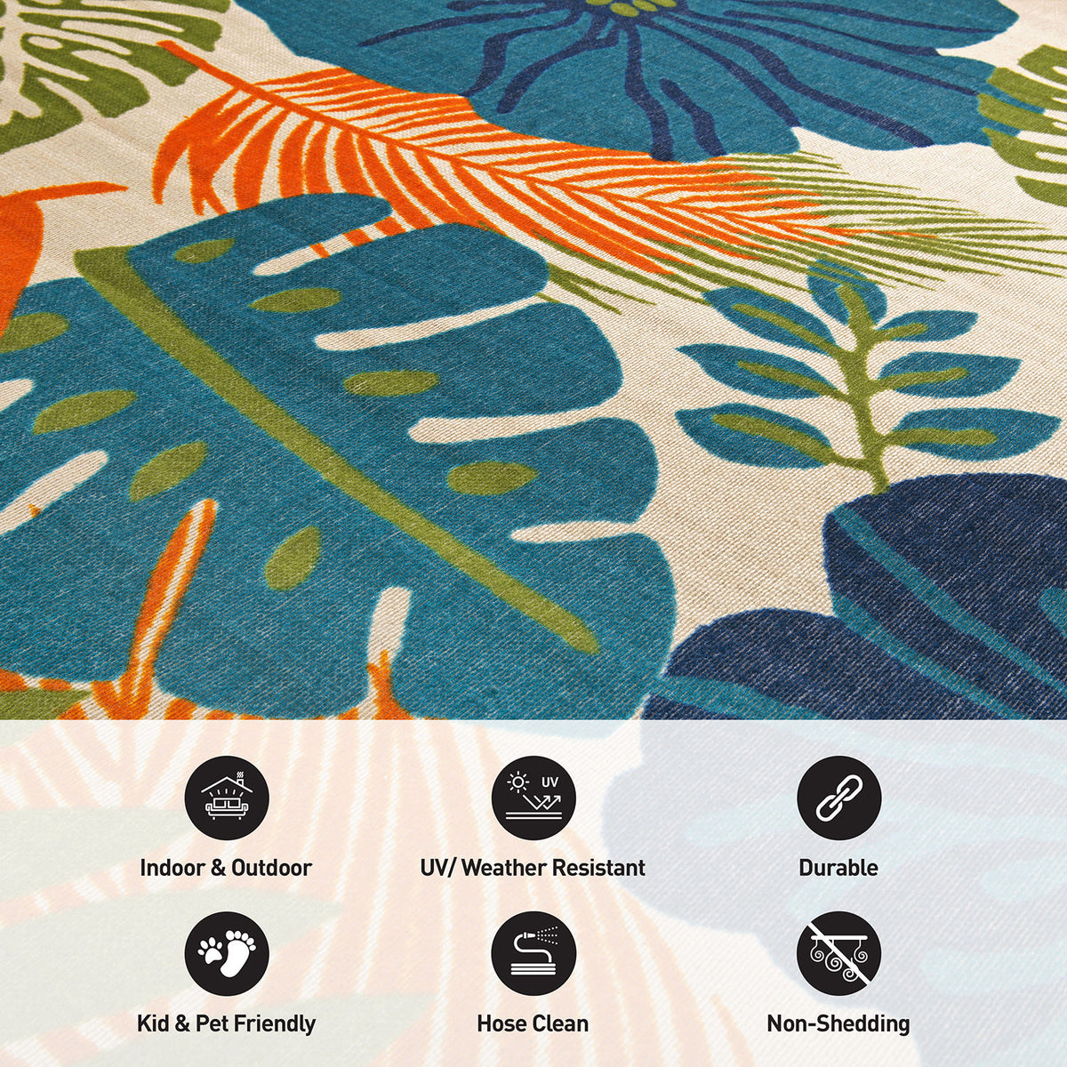• Non-shedding with a sleek pile height to fit underneath patio furniture or in entryways seamlessly.