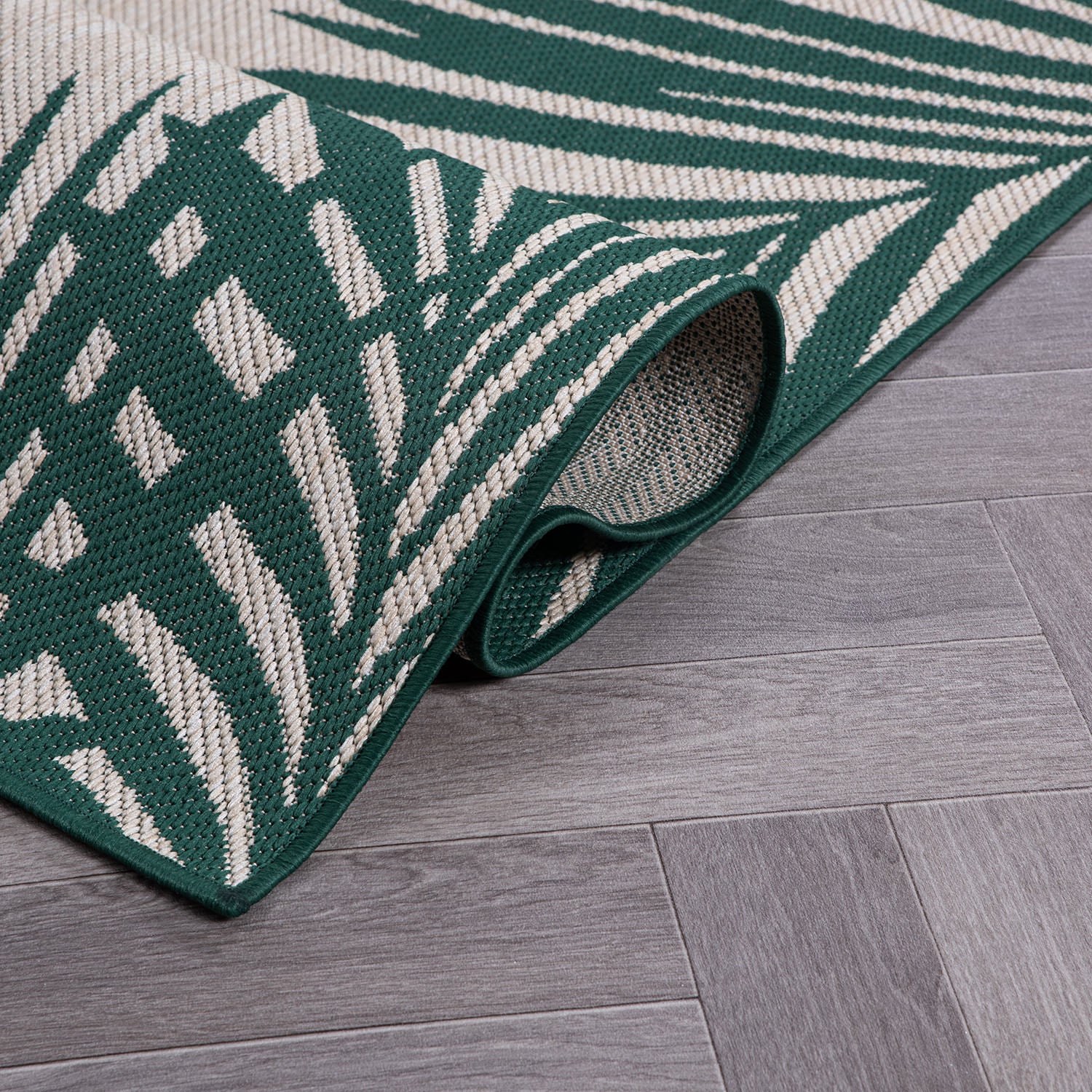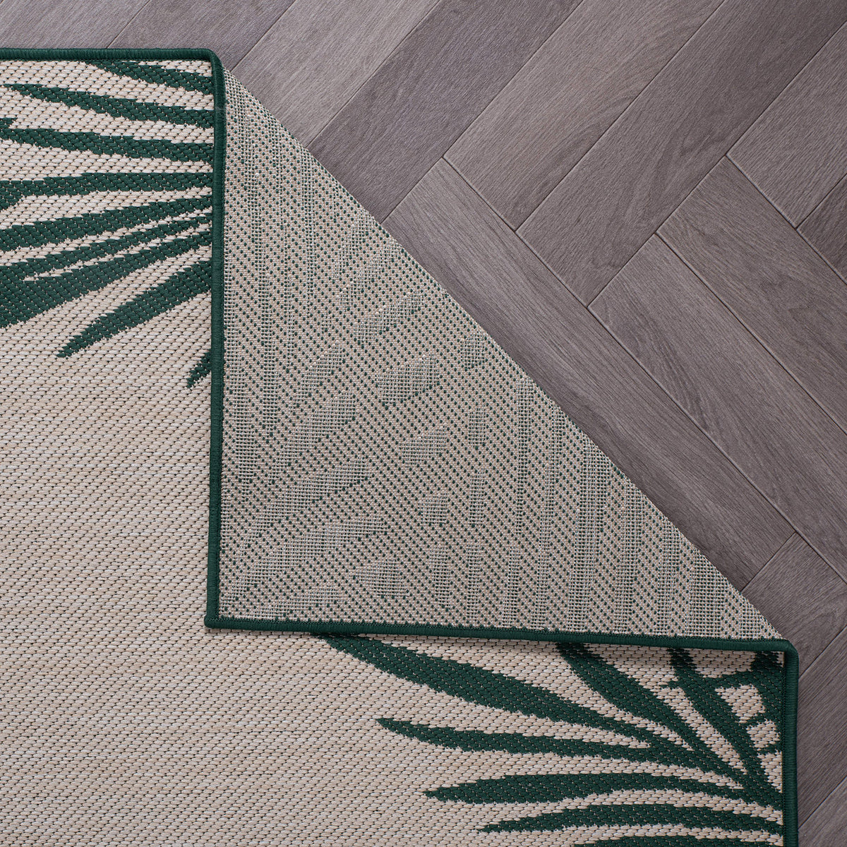 Liven up your indoor or outdoor décor with this tropical flatwoven rug. It features a floral palm design and vibrant colors.It is easy to maintain by rinsing with a garden hose with soapy water and air drying.For indoor or outdoor use. This collection offers area rugs that are suitable for all indoor/outdoor spaces.
