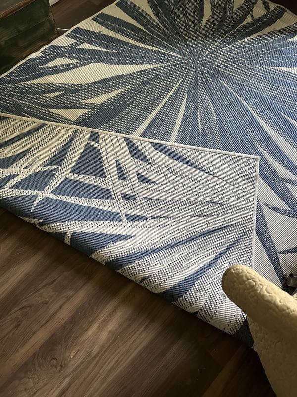 • Durable Indoor/outdoor reversible rug. Flatweave weather-resistant construction.