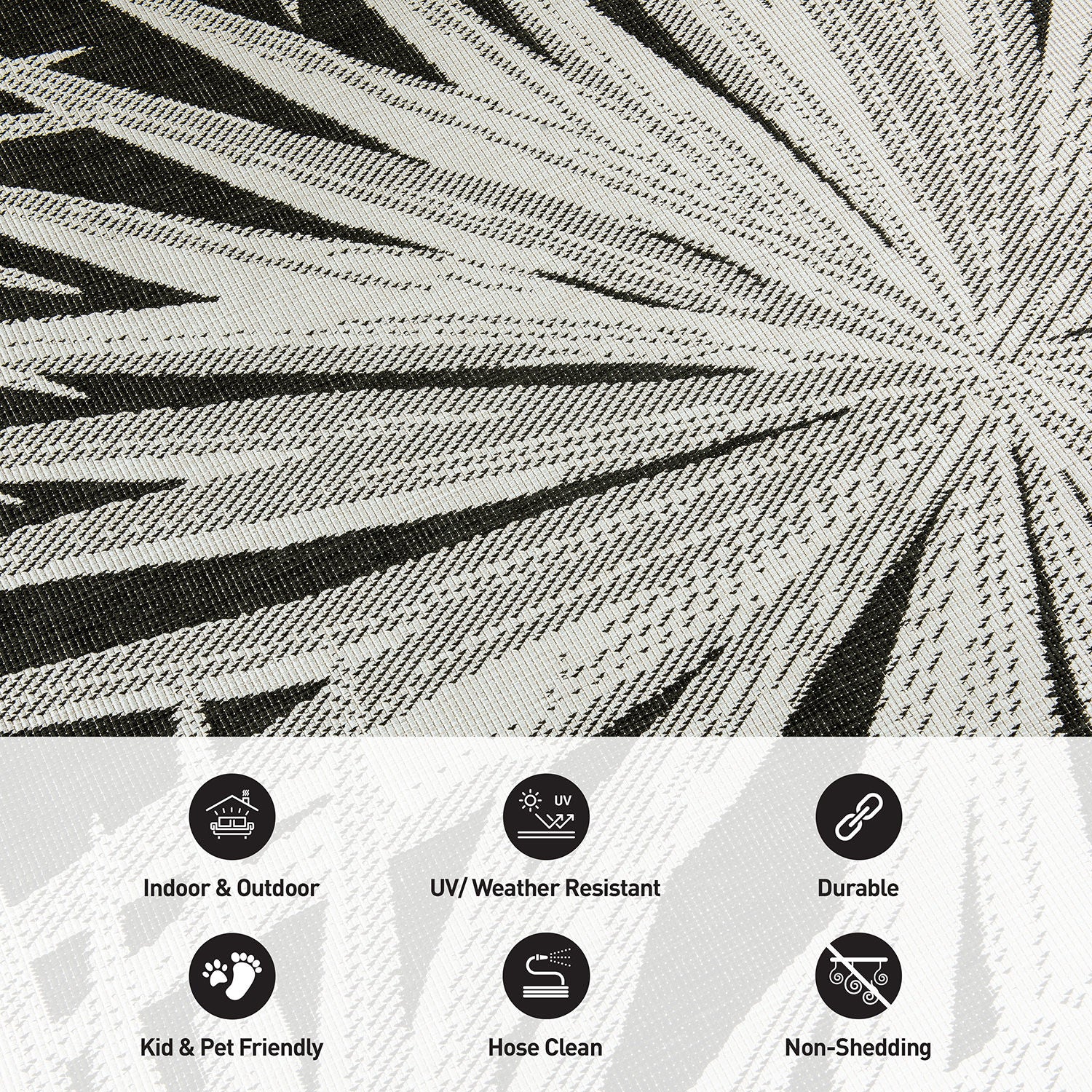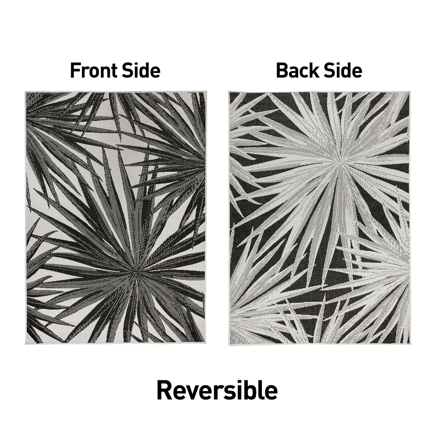 • Durable Indoor/outdoor reversible rug. Flatweave weather-resistant construction.