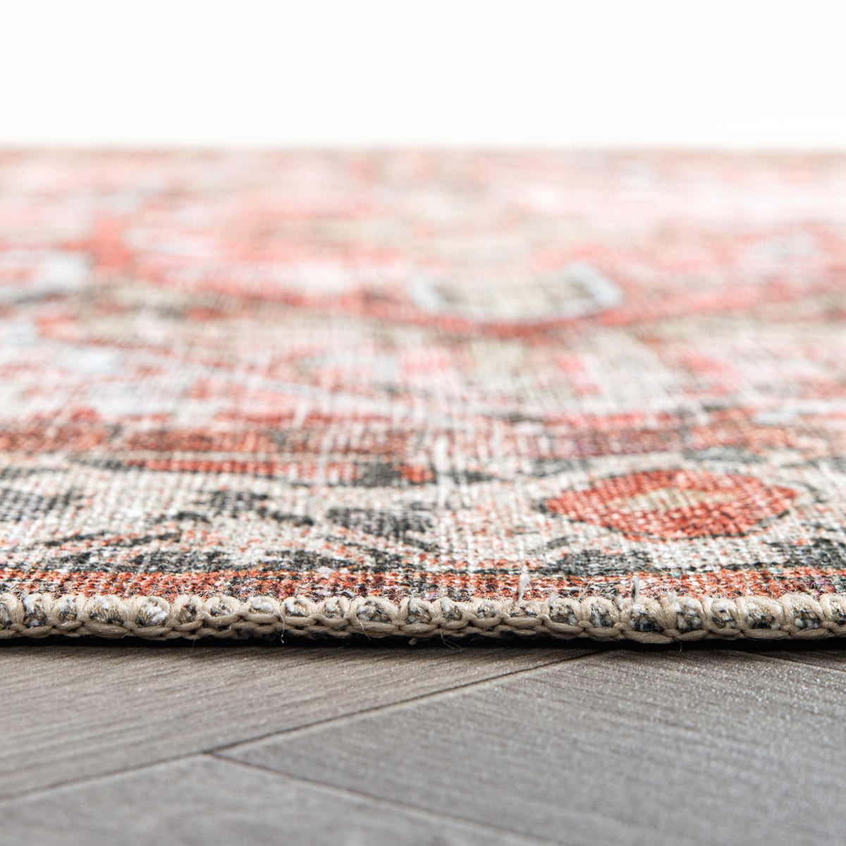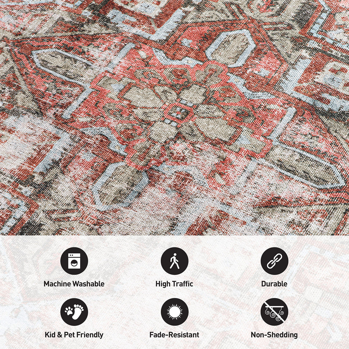 Elevate your home decor with our machine-washable polyester area rug, now featuring a non-slip backing for added safety, showcasing a harmonious fusion of global-inspired patterns, traditional Oriental design, medallion motifs, and distressed accents. Uncompromising on quality, this rug adds a vintage charm to any space. Engineered for comfort and durability, it's perfect for high-traffic areas and pet-friendly households. The flat-woven design simplifies cleaning, and crafted from OEKO-TEX certified premium recycled materials, it embodies both style and sustainability.