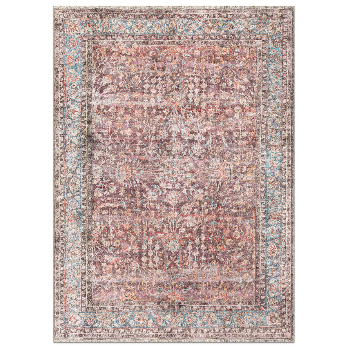 Vintage Distressed Bordered Machine Washable Area Rug - Multi