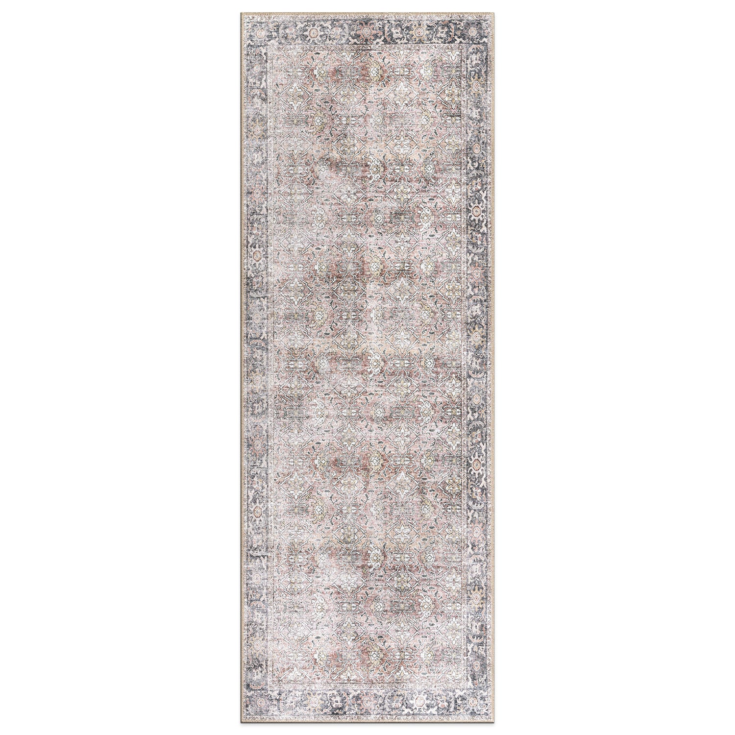 The world nonslip rug looks like it is made out of good material and very durable. The size of the rug is very convenient because you can use it in different places. The one thing I didn’t like about the rug is the distressed look makes the rug look completely washed it. It has very little color to it.