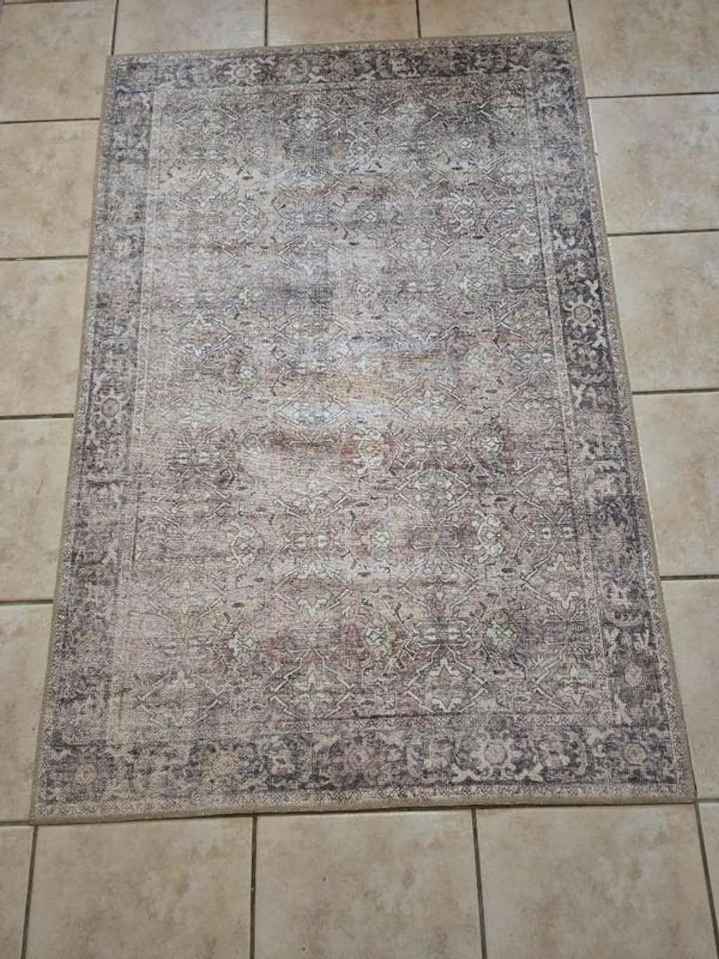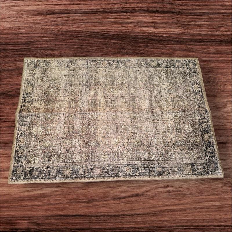 Vintage Distressed Machine Washable Non Slip Area Rug - Gray