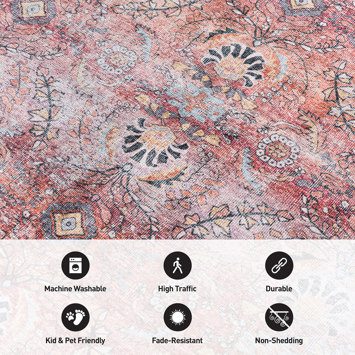 • Durable Elegance for Busy Spaces: Engineered for everyday resilience, our machine-washable rugs are ideal for high-traffic areas. Kid and pet-friendly, perfect for high-traffic areas like living rooms, dining rooms, bedrooms, entryways, nurseries, kid's rooms, playrooms, dorm rooms, studies, or home offices.