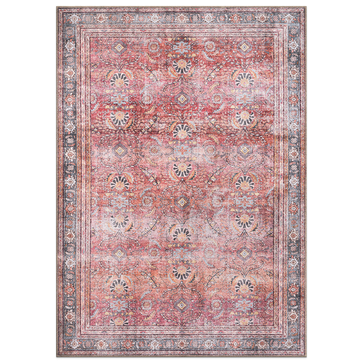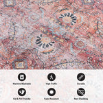 Vintage Inspired Machine Washable Non Slip Area Rug - Gray
